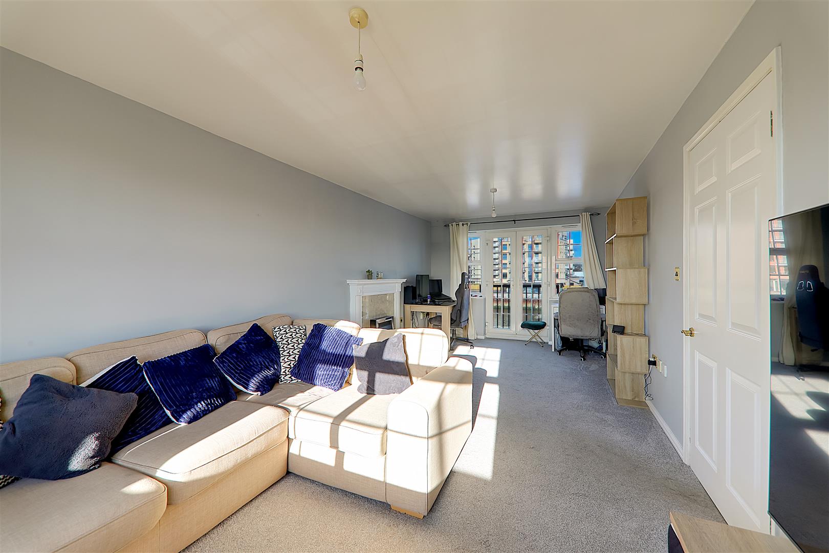Carpeted floor, two radiators, PVCU double glazed window, PVCU double glazed double doors opening onto juliette balcony with distant downland and direct river views, feature fireplace with attractive surround, skimmed ceiling.