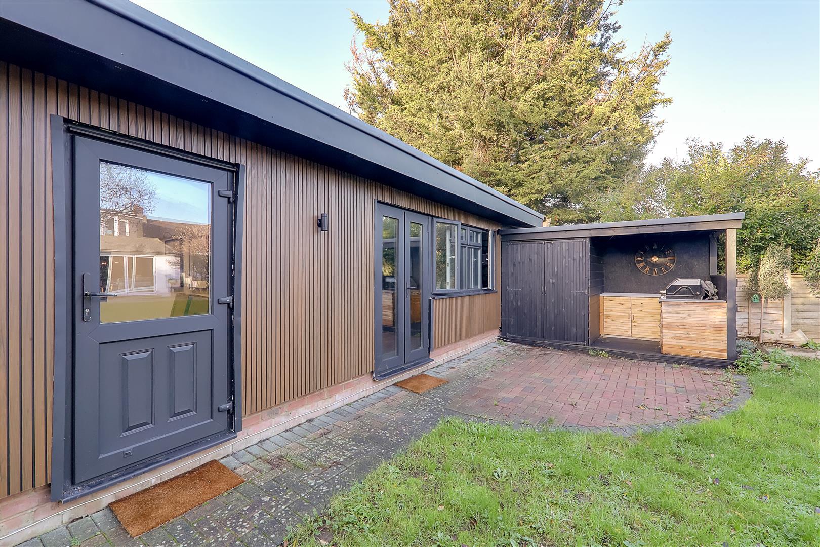 Patio area with space for hot tub, gated side access, outside security lighting, outside tap, large lawned area with various flower & shrub borders, fence enclosed, at the rear of the garden is a brick built outbuilding which has been converted an insulated by the current owners to a high specification. (The current owners have split into a Home Office & Gym), Timber built outbuilding with double opening doors perfect for garden equipment, BBQ area with concrete work surfaces with cupboards & drawers below, space for gas BBQ.