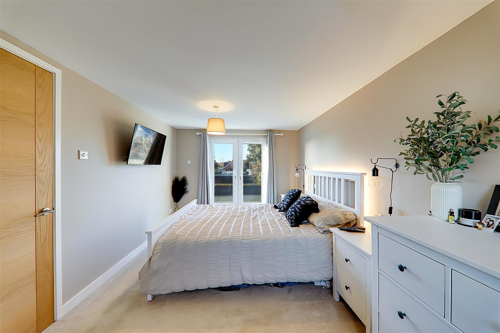 Carpeted floor, single radiator, various power points, television point, PVCU double glazed window with fitted shutter blinds, PVCU double glazed doors opening onto Juliette Balcony, skimmed ceiling.