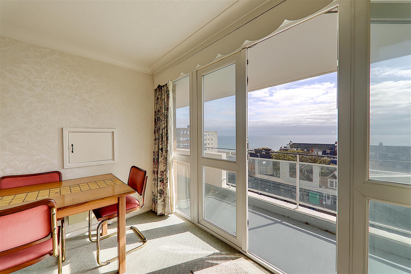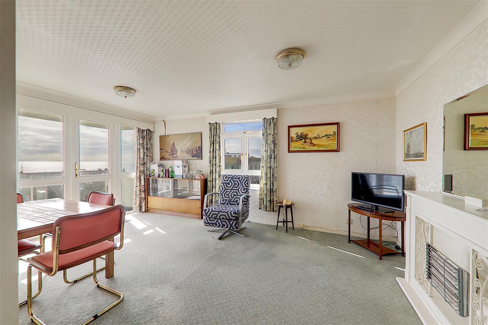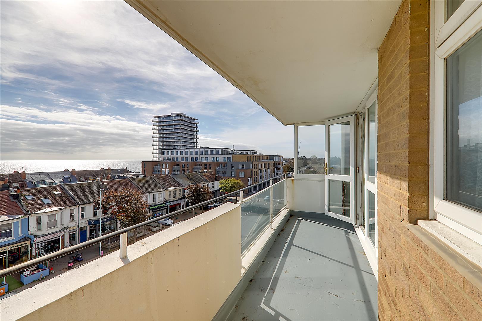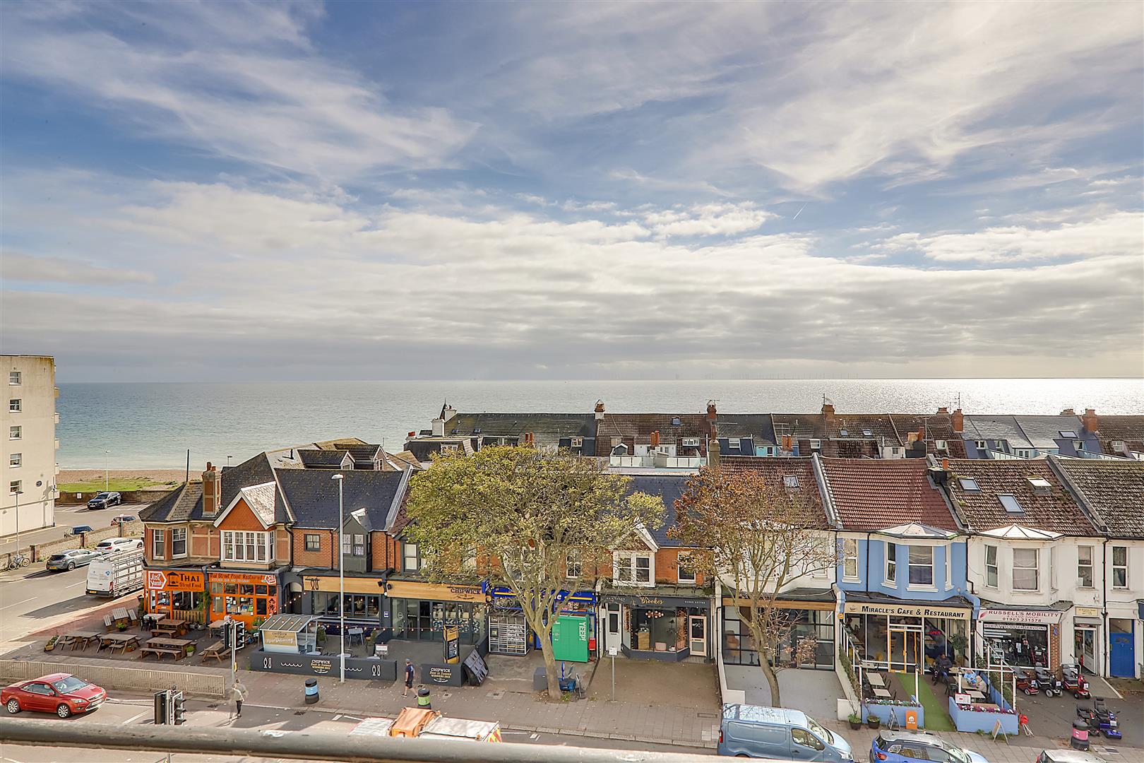 Delightful fifth floor purpose built apartment with south facing balcony and garage, having superb sea and direct sea views. Situated within a few hundred yards of Worthing seafront and promenade, with local shops and Worthing town centre close by the accommodation comprises: entrance hall, dual aspect lounge/diner, south facing balcony, kitchen, two double bedrooms and bathroom/WC. The property benefits from high speed passenger lift and double glazed windows. Externally there is a brick built garage in compound at the rear of the property and pleasant lawned communal gardens. CHAIN FREE.