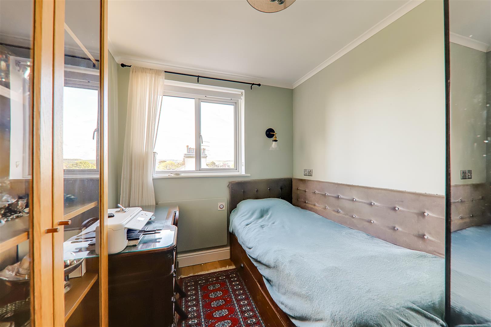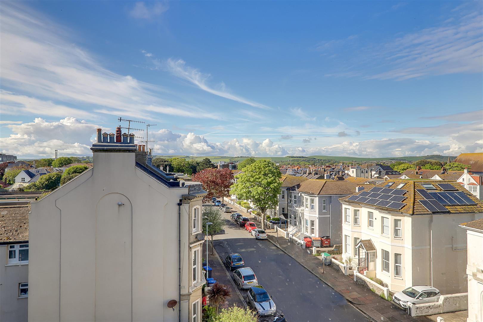 *Pets considered with a monthly supplement* Well presented 2 bedroom apartment with views over the town towards the sea and South Downs. Ideal, central location, close to Worthing Hospital, Worthing mainline railway station and the sea front. Main double bedroom featuring a wall of fitted wardrobes, second small double bedroom/large single with built-in corner wardrobe. The bathroom is modern with a white suite. Bath with two showers over! Main thermostatic rain-head shower plus additional electric shower (ideal for hand-held usage.) Counter-top basin with storage drawers below. Marble effect splash back tiling and underfloor heating. The kitchen boasts a full range of integrated appliances, electric hob, electric oven, fridge/freezer and dishwasher. Matching wall and base units with industrial style handles and lighting. Space for a breakfast table and chairs. Underfloor heating. The lounge/dining area is large and offers the dual aspect views. Hard flooring throughout. Available end of January. Council tax band B. Permit parking in immediate surrounding area. Children welcome.