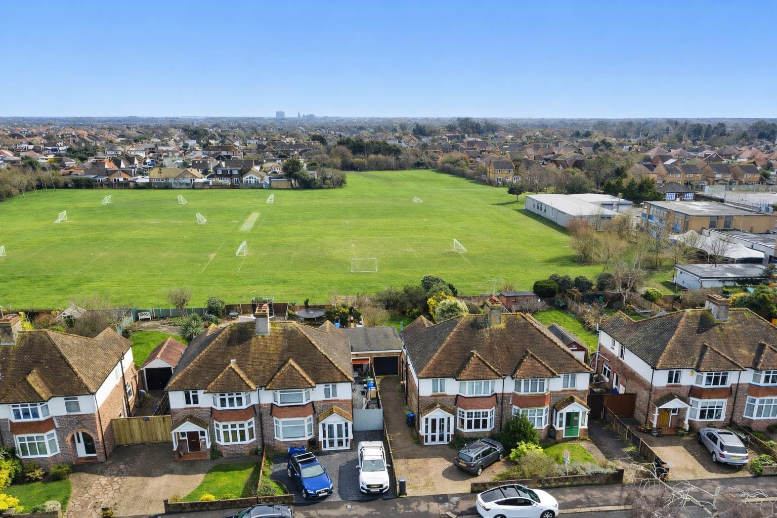 Brick block paved private driveway providing off street parking for several vehicle vehicles and leading to the garage. Outside water tap. Side gate to rear garden.