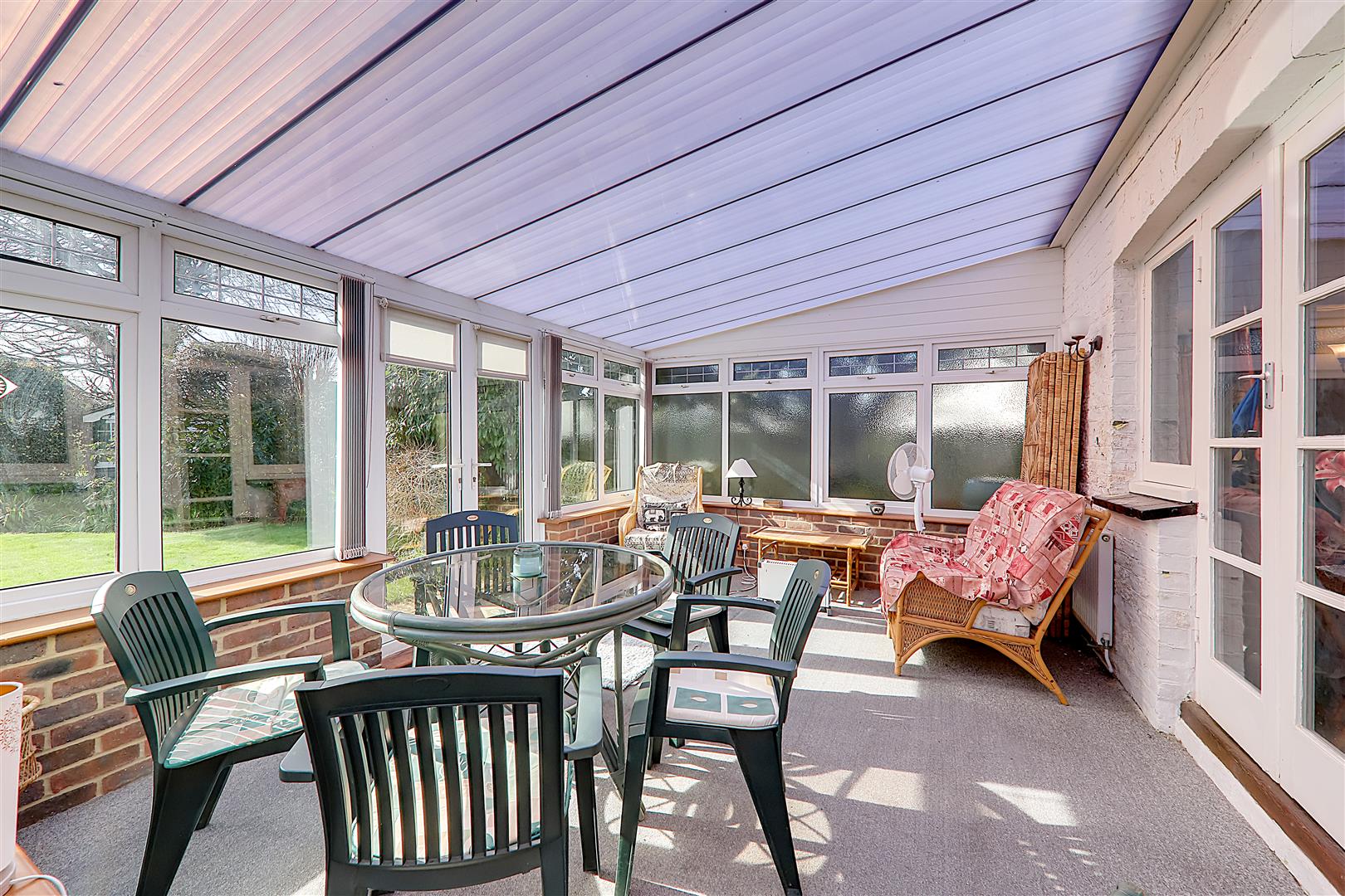 Marble effect fireplace around. Radiator. Picture rail. Two wall light points. French doors with the window either side opening to south facing conservatory.