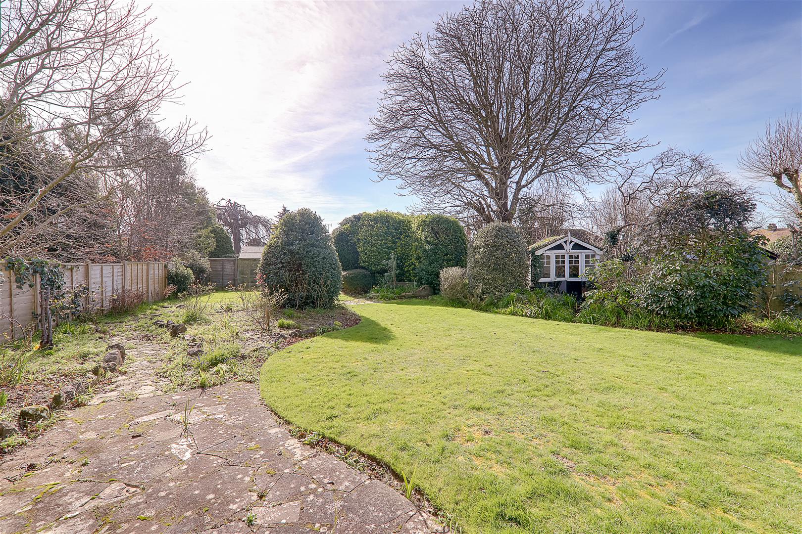 Beautifully maintained garden with shaped lawn and patio entertaining areas with pathways providing access through to the rear of the garden. Stocked with mature planted beds and borders providing an array of seasonal colour and foliage. Timber shed. Pedestrian access gates to both east and west elevations. Double glazed door to garage.