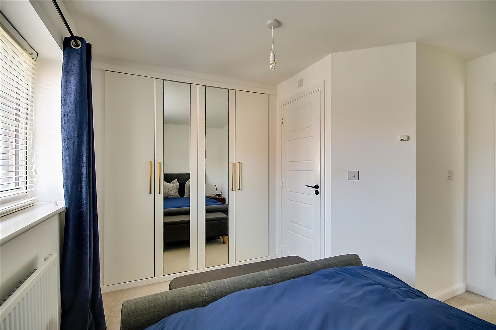 Double bedroom. Carpet. Double glazed window overlooking the rear garden. Radiator. Built in wardrobes. Access to cupboard above stairs housing hot water cylinder. Pendant light. Door to;