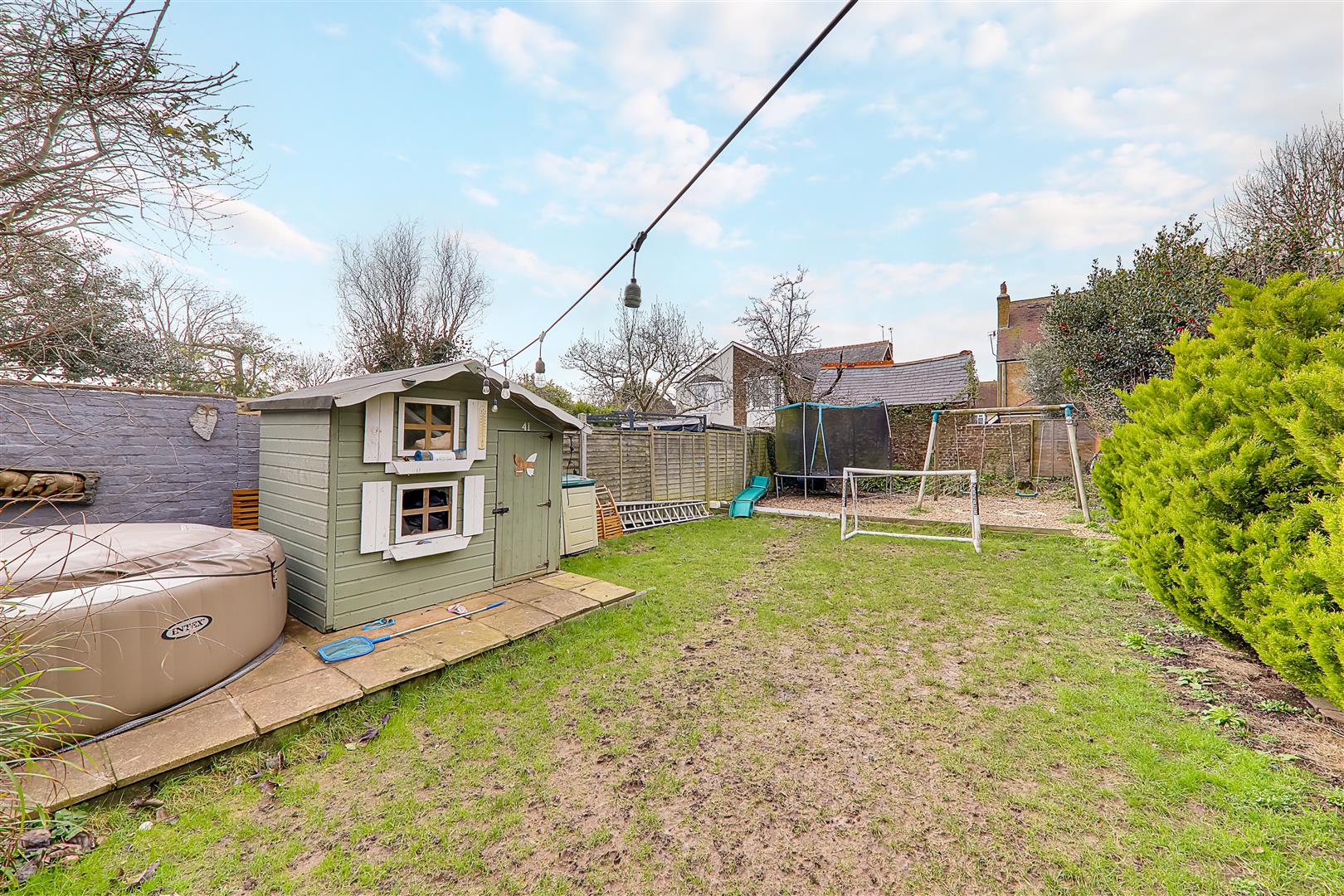 Hardstanding patio area with space for tables and chairs also leading to Garage. The majority being laid to lawn. Further shingle area. Six foot fence surround. Borders of mature trees shrubs and bushes. Access to front via side gate. Outside water tap.