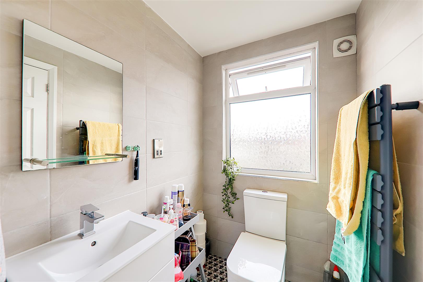 Close coupled WC. Wall mounted wash hand basin with mixer tap. Double glazed window.
