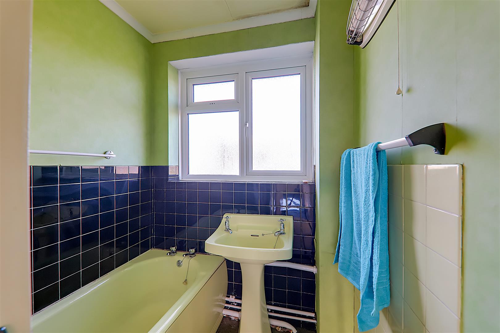 Carpeted floor, panel enclosed bath, pedestal hand wash basin, electric heater, PVCU double glazed window.