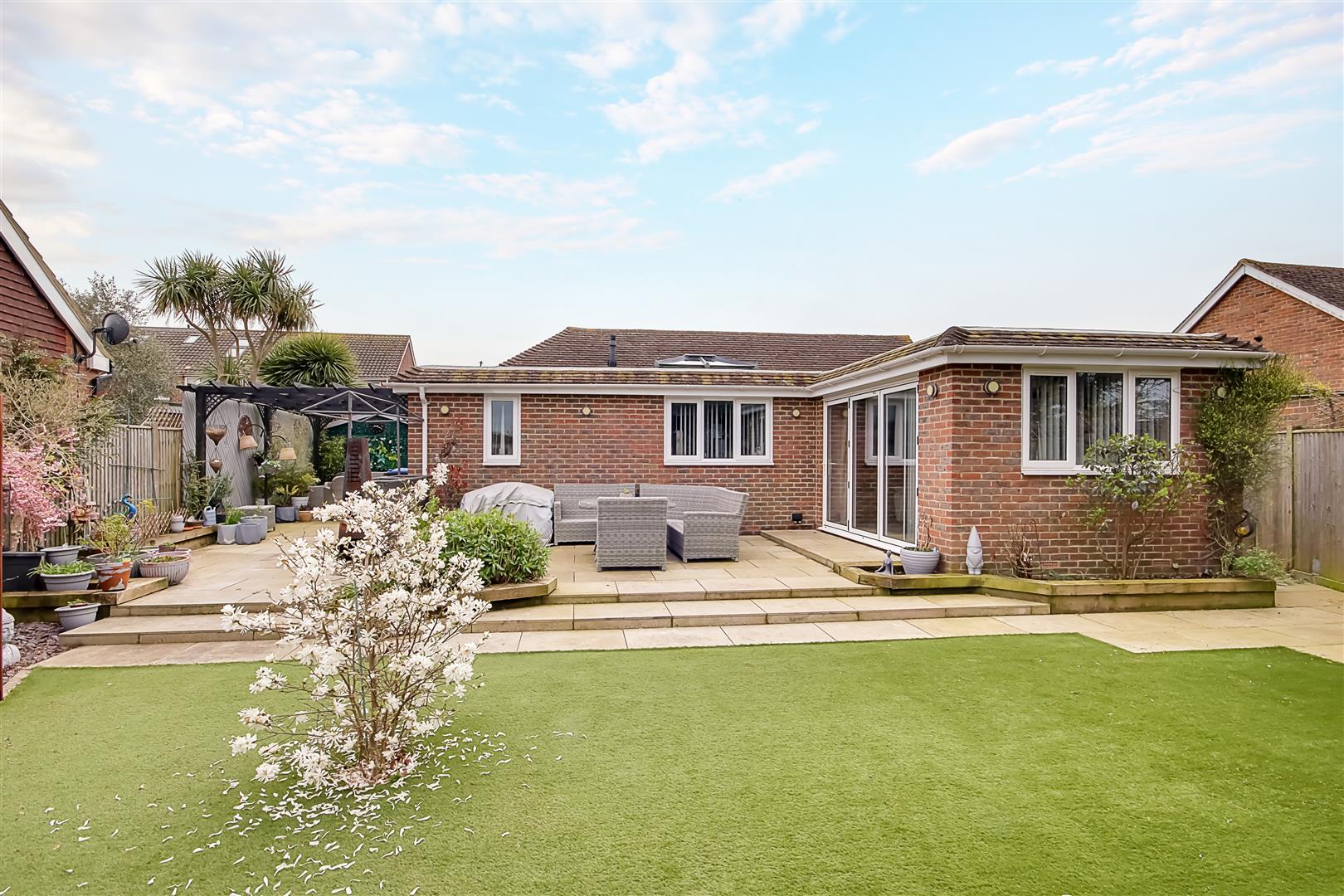 We are delighted to offer sale this immaculately presented two / three bedroom detached single level bungalow occupying this enviable corner plot in a popular cul-de-sac location in Sompting having the added benefit of a double width garage & generous amounts of off street parking.
