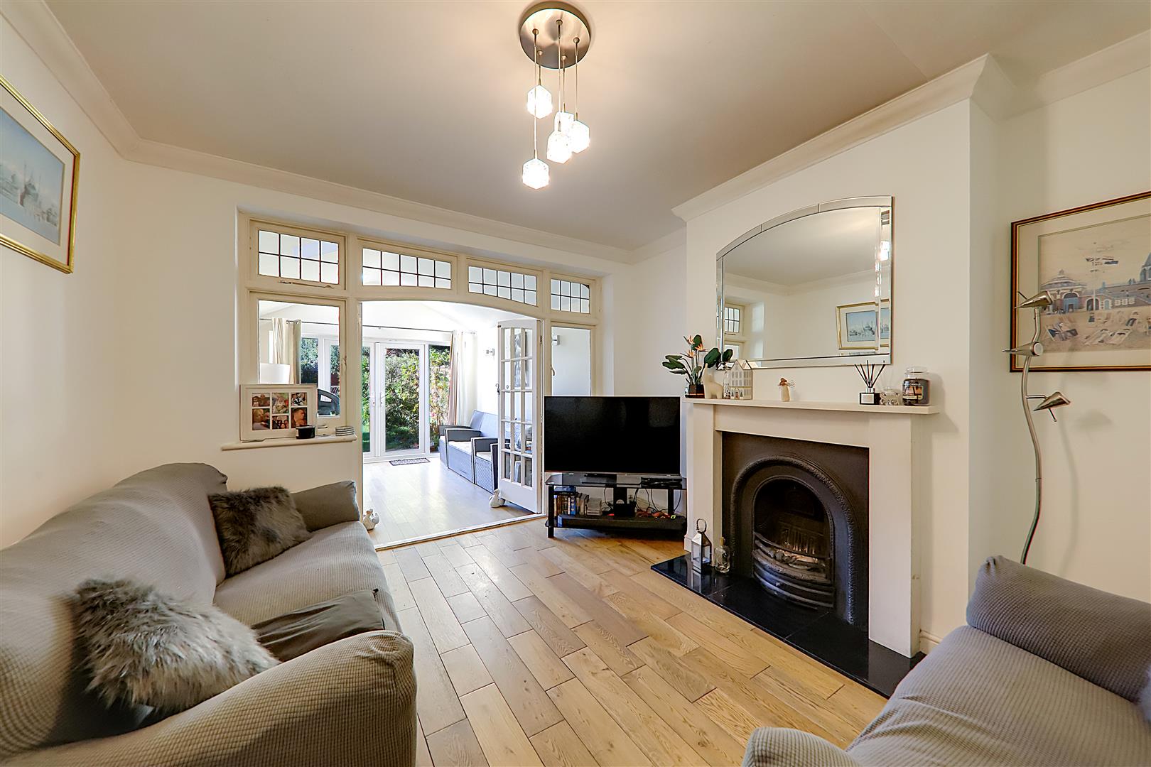Solid wooden floor, original open fireplace with tiled hearth - attractive surround & mantle, television point, various power points, skimmed ceiling with coving, double opening doors into Family Room.