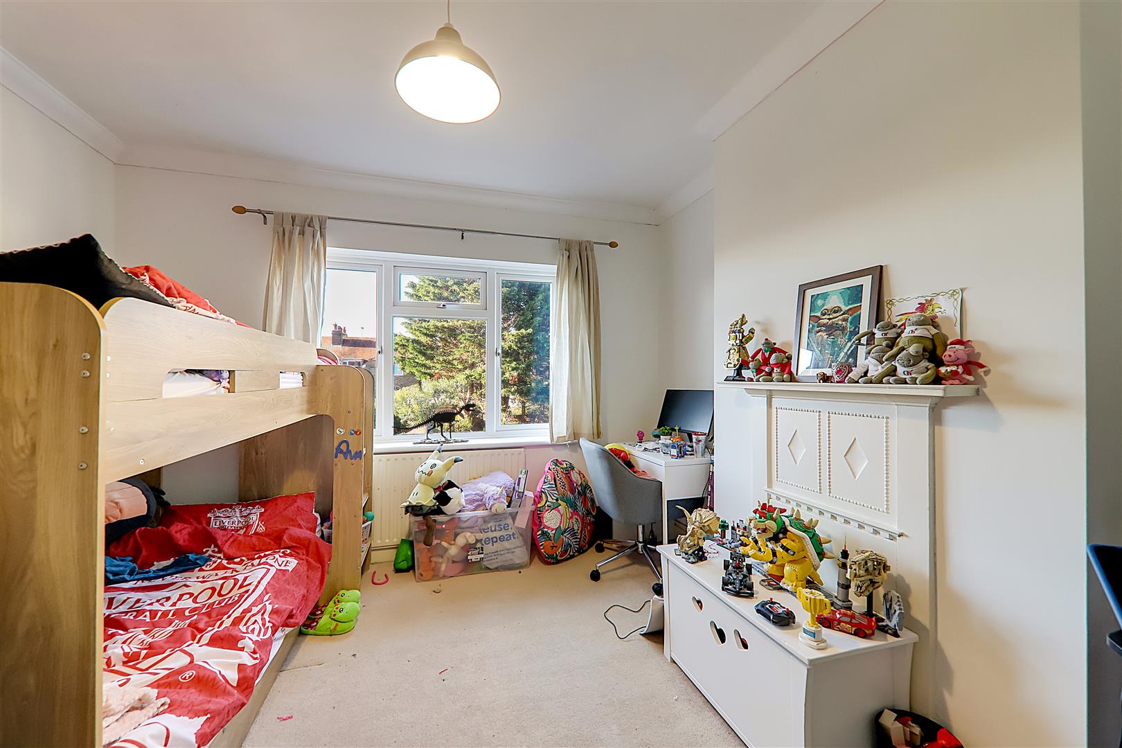 PVCU double glazed window, carpeted floor, skimmed ceiling with coving.