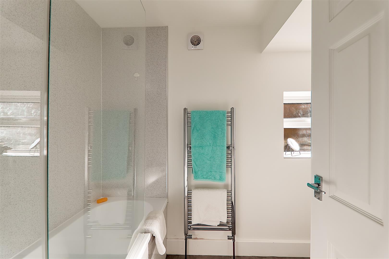 Fitted suite comprising of a panelled bath with mixer taps and having shower unit and shower screen over. Pedestal wash hand basin with mixer taps. Push button w.c. Chrome ladder design radiator. Extractor fan. Levelled ceiling. Obscure glass double glazed window.