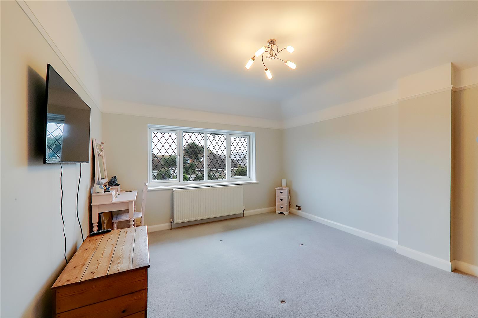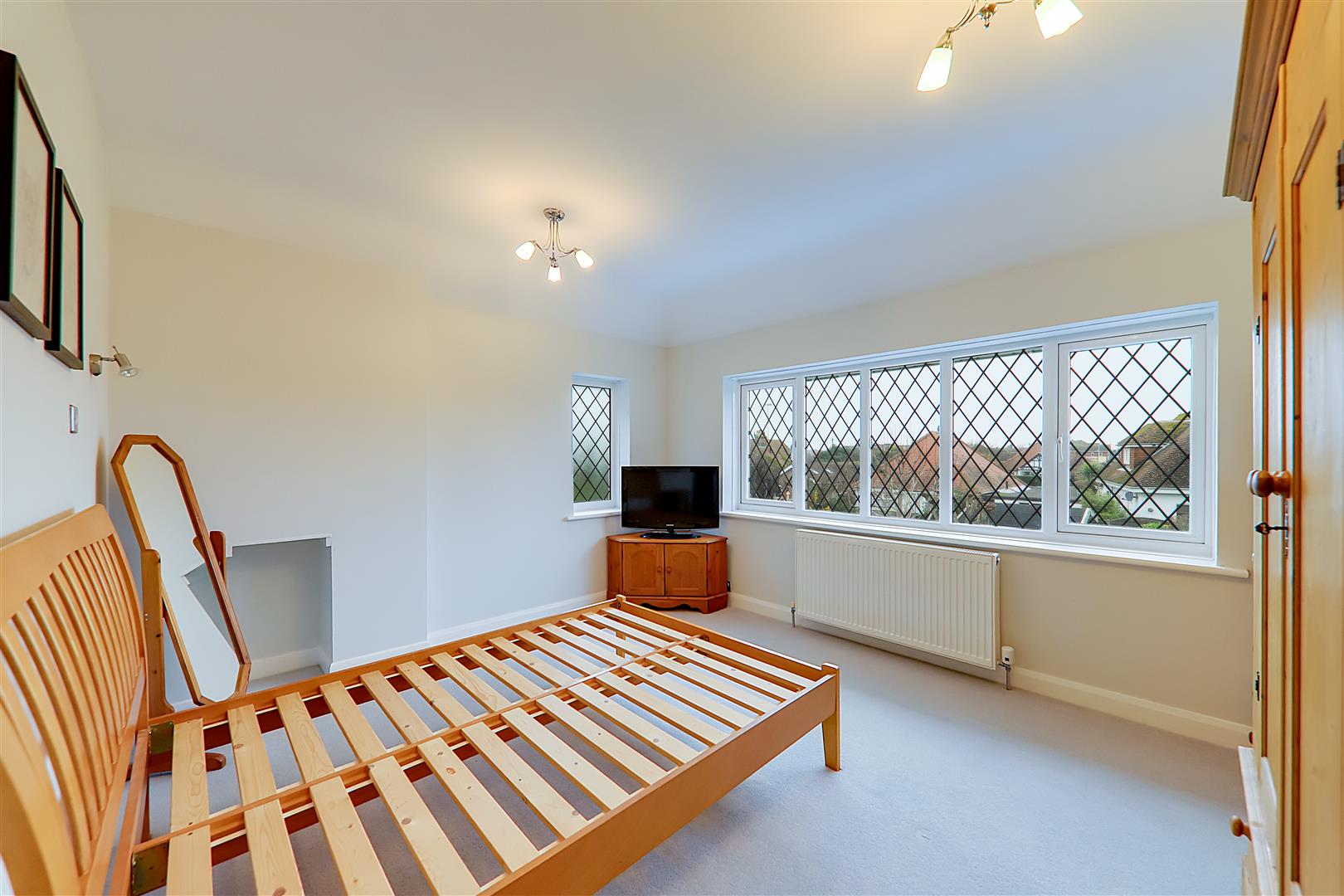 Carpeted throughout. Two double glazed windows. A range of fitted wardrobes. Radiator. Door leading to;