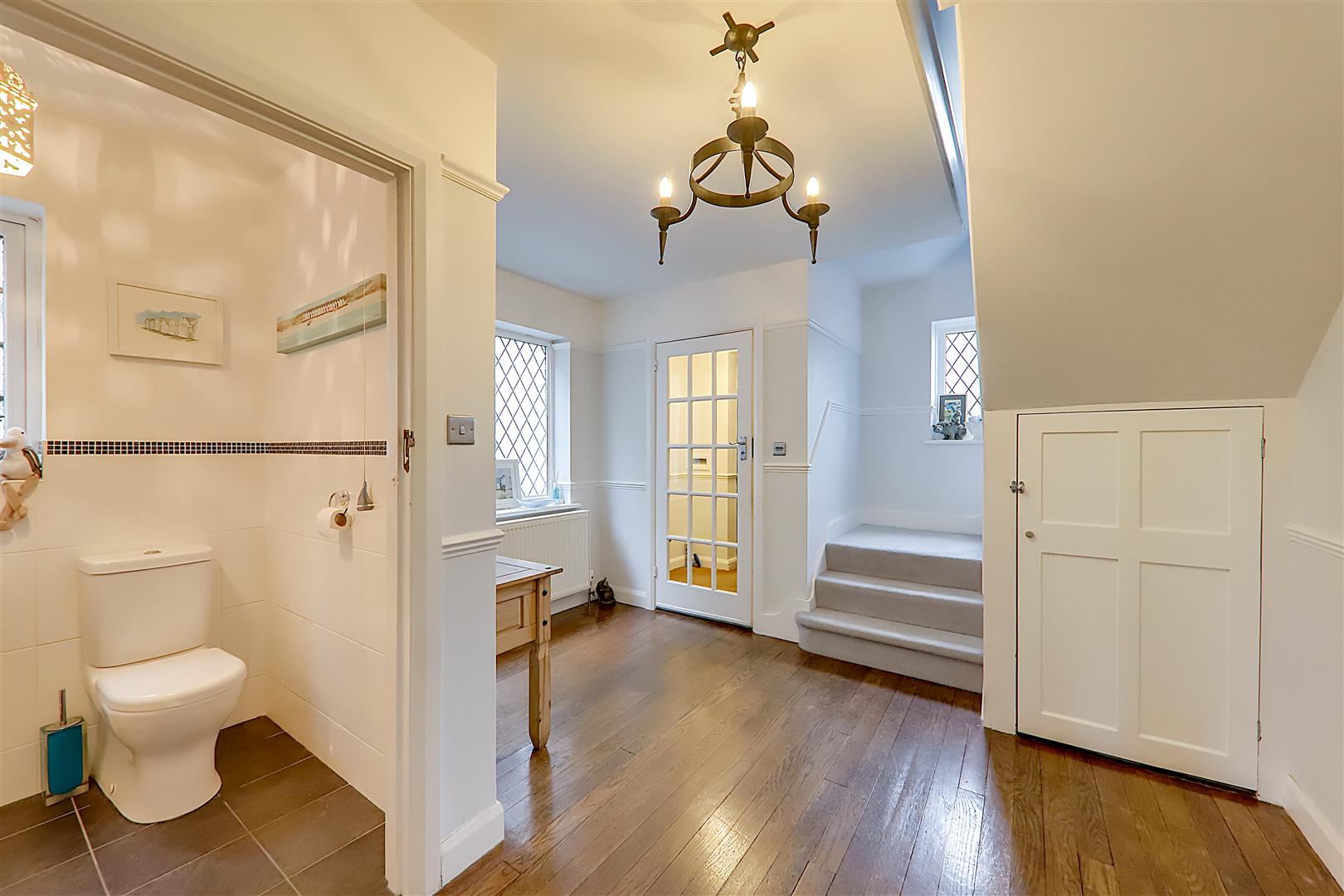 Floorboards throughout. Radiator. Obscured Double glazed window. Access to under-stair cupboard.