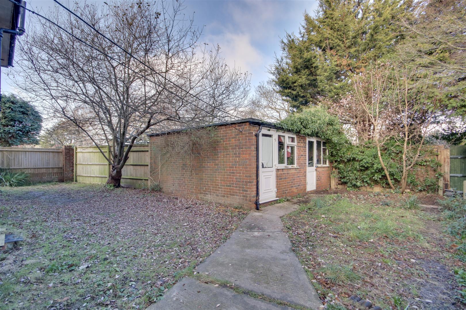 Rolledge worksurface having insect stainless steel single drainer sink with mixer tap and draining board. Fitted oven. Ring electric induction hob with concealed extractor fan over. Space and plumbing for washing machine. Space and plumbing for dishwasher. Space for tall fridge freezer. Matching range of cupboard drawers and eyelevel wall units. Recessed larder cupboard. Double glazed window with views of Worthing manor ground.