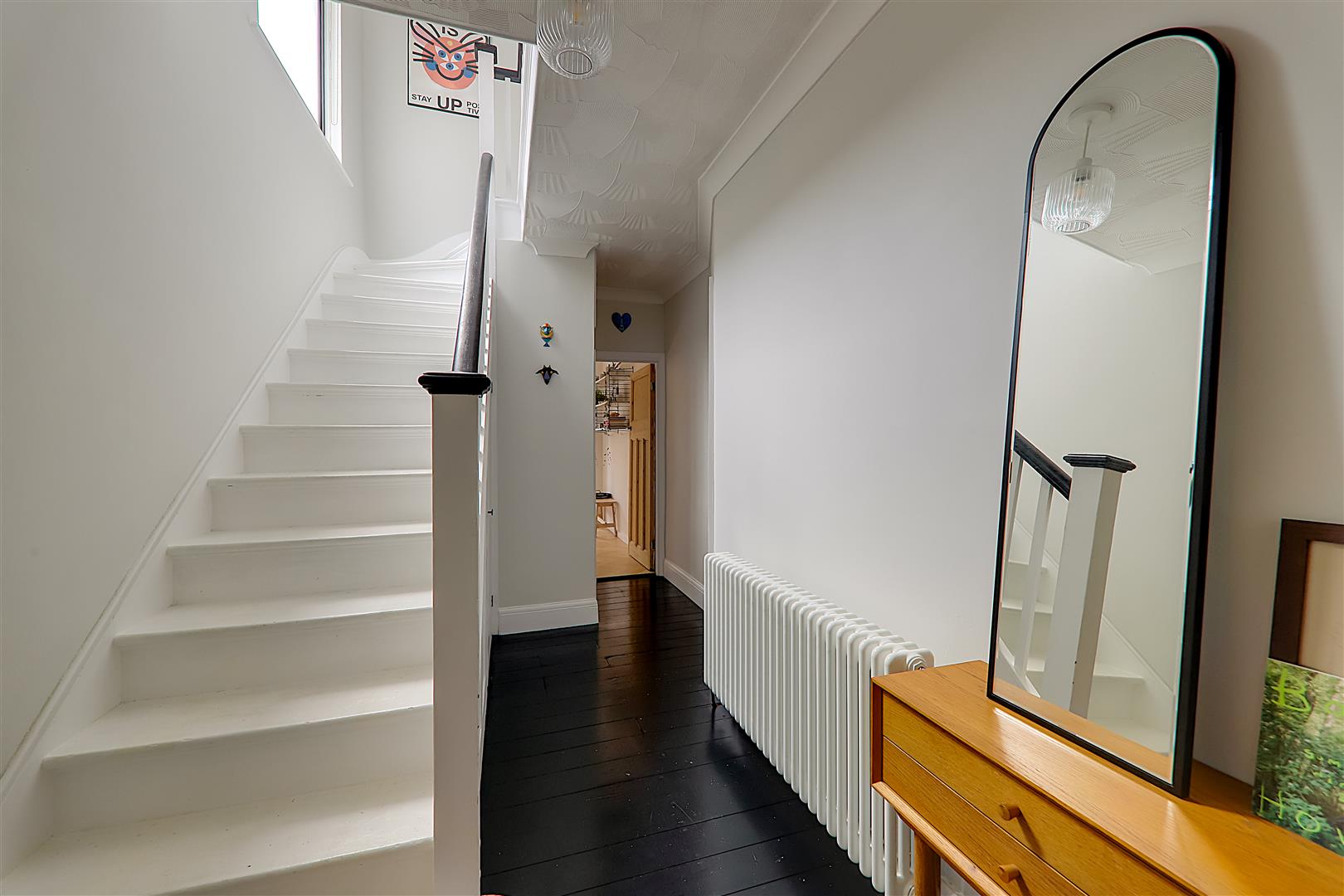 Column Radiator, understairs storage cupboard, stripped & painted floorboards, stairs to first floor, textured & cover ceiling.