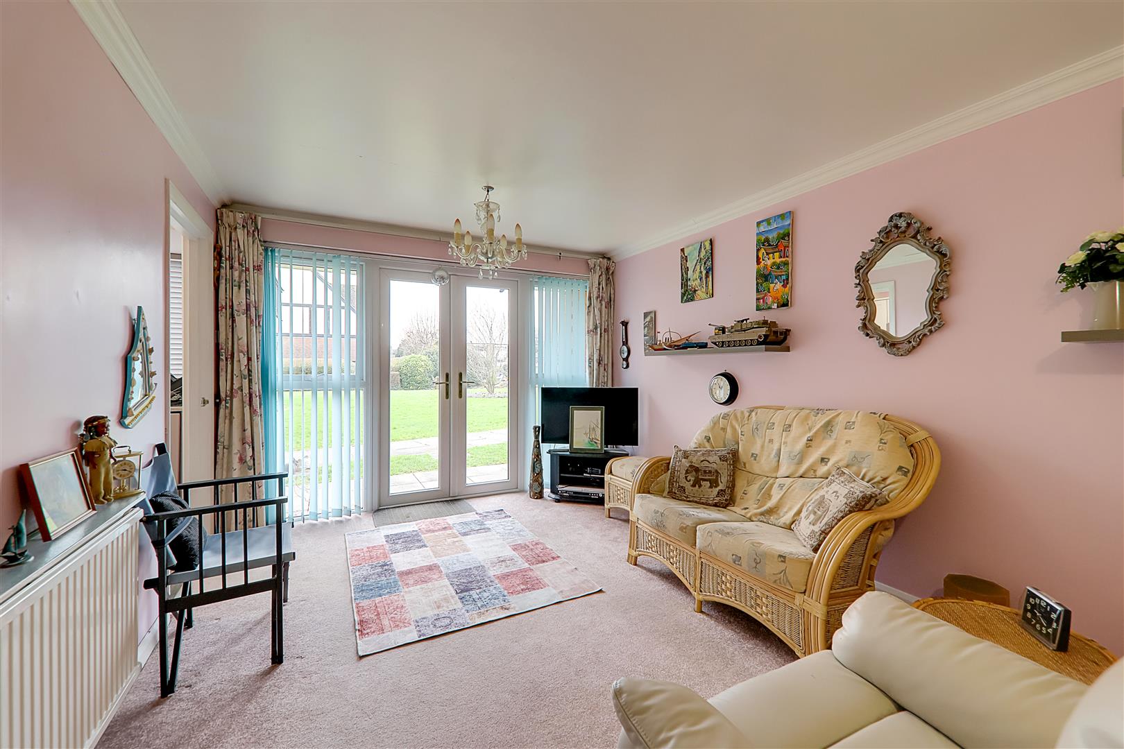 With double glazed windows and French doors to patio area and overlooking the communal gardens, radiator, opening to kitchen.