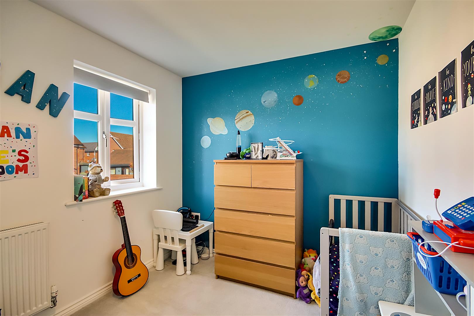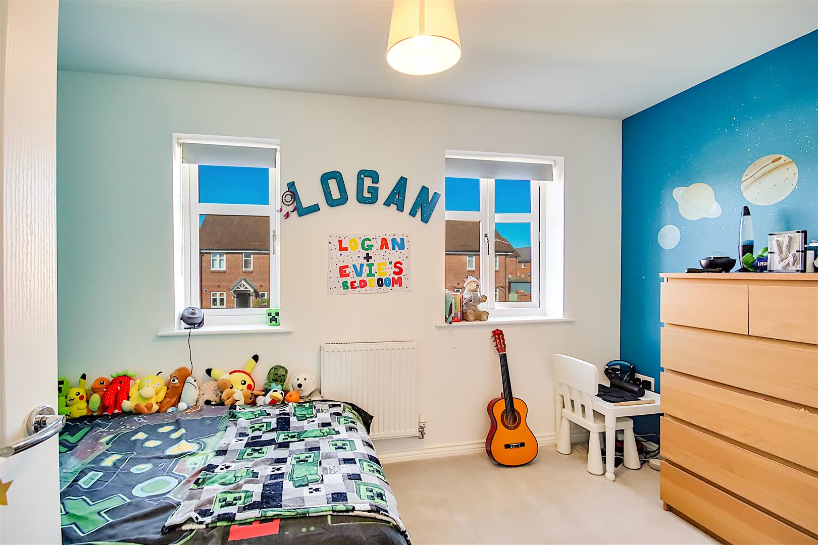 North aspect via two double glazed windows. Built in storage cupboard. Radiator. Levelled ceiling.
