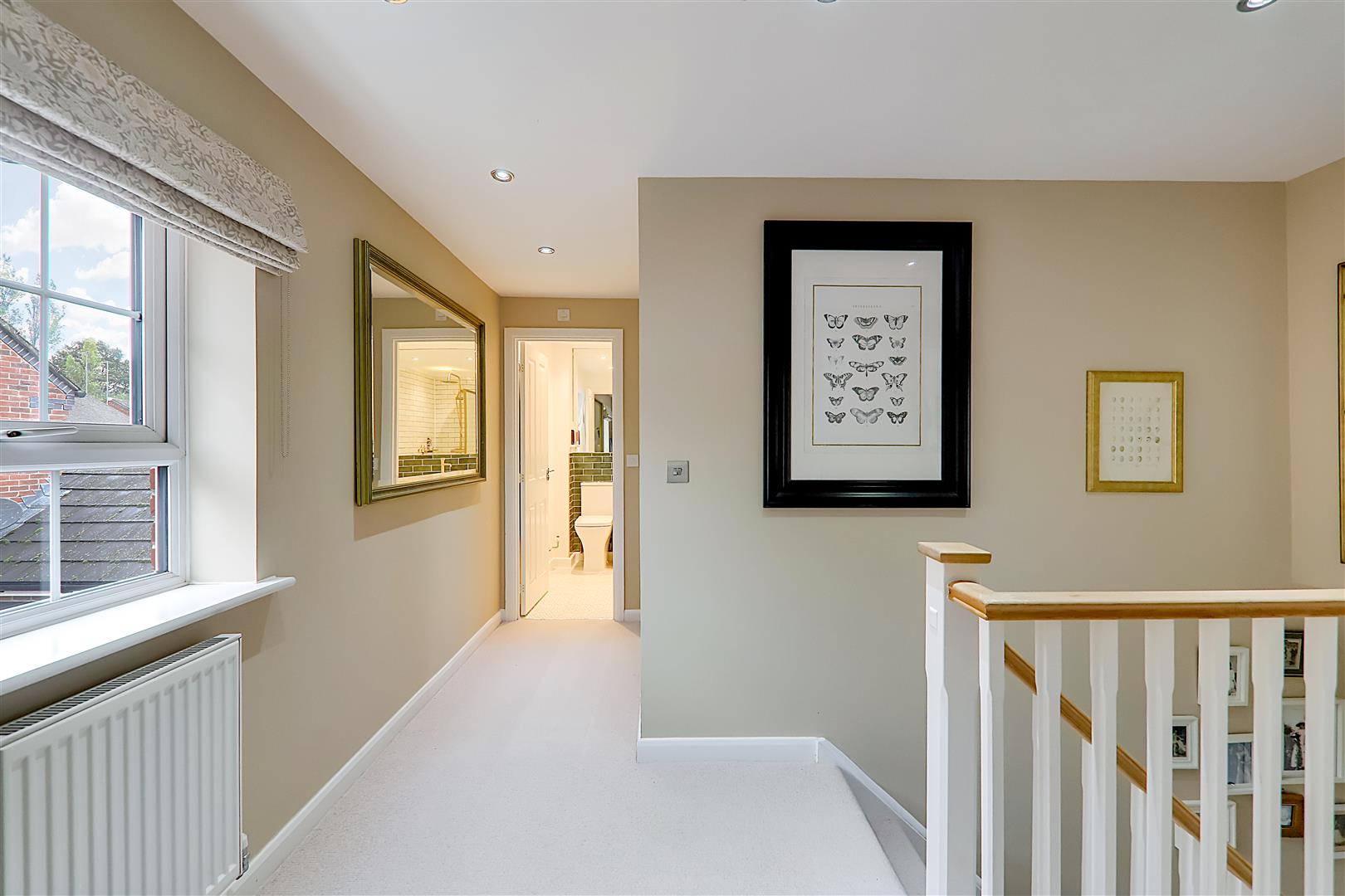 Double glazed window. Radiator. Airing cupboard with hot water cylinder and shelf. Inset spotlights. Access hatch to loft boarded loft space with drop down ladder and power and light.