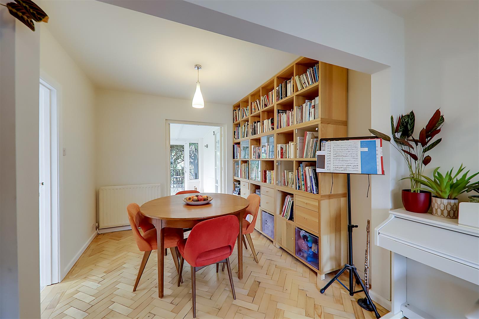 Herringbone wood floor. Double glazed window. Radiator. Fireplace. Two wall light points. Opening to