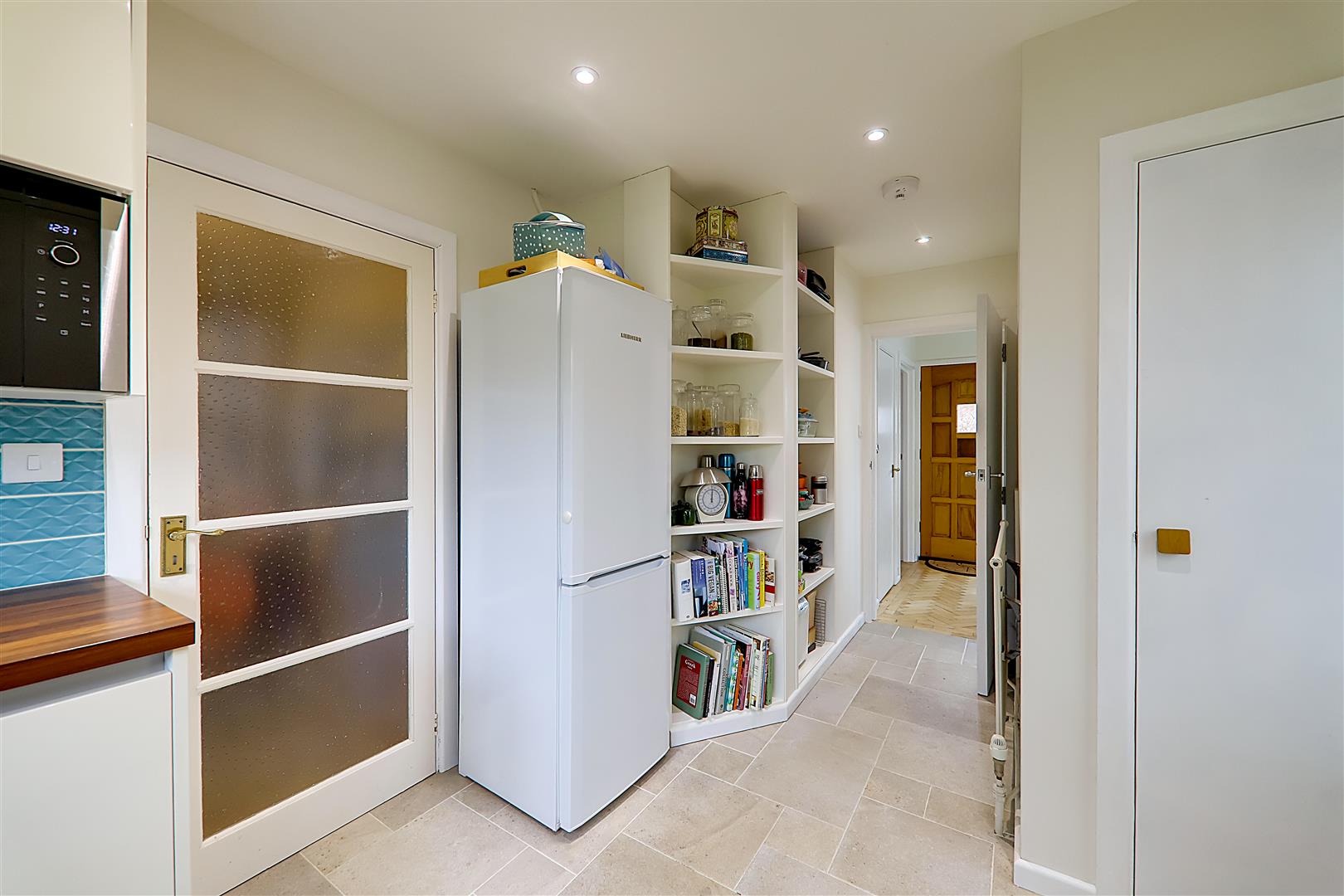 Larder cupboard with double glazed window and wall mounted boiler. Space for upright fridge freezer. Double glazed window overlooking the rear garden. Part tiled walls. Inset single drainer sink unit. Double glazed door opening to the carport. Radiator. Full height built in shelves.