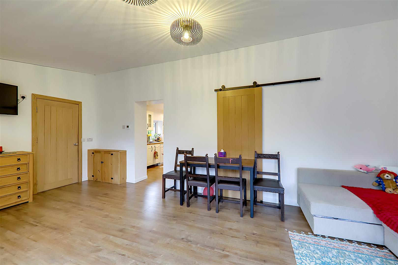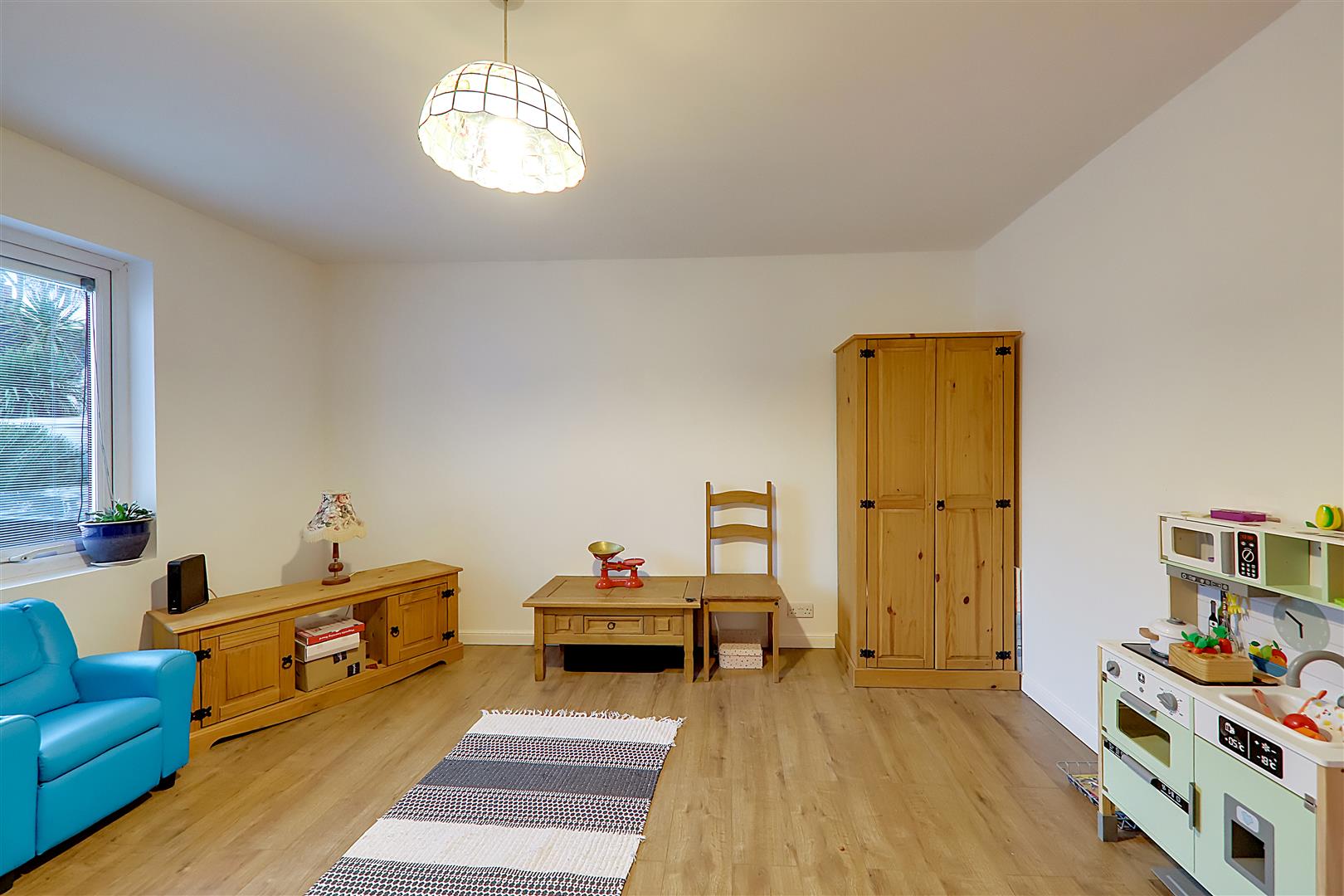 Laminate flooring, underfloor heating, television point, various power points, PVCU double glazed window, sliding door through to open plan living room to rear, skimmed ceiling.