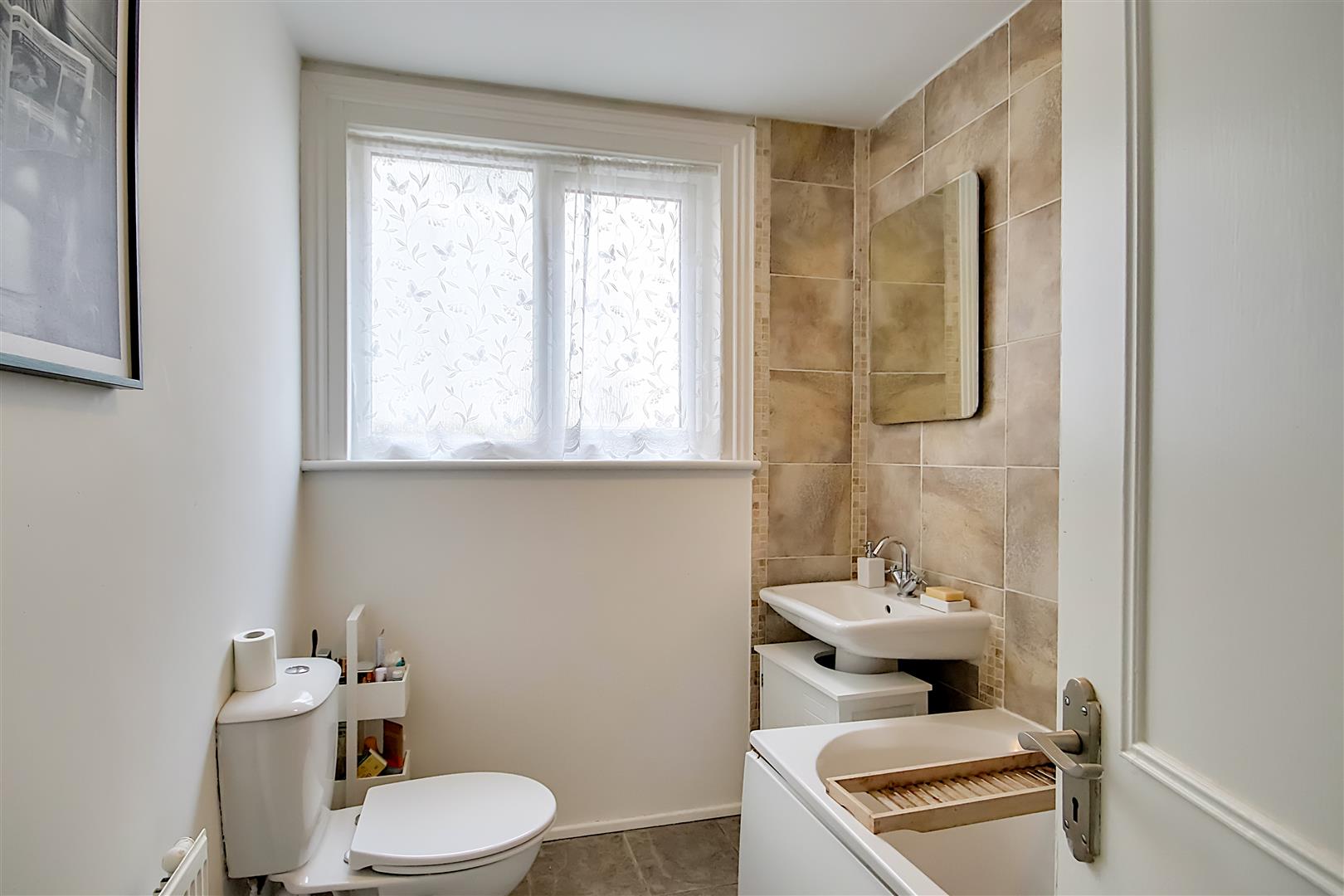 White suite comprising panelled bath with mixer tap. Electric ‘Aquatronic 2’ shower unit. Pedestal wash hand basin with mixer tap. Close coupled WC. Radiator. Double glazed window.