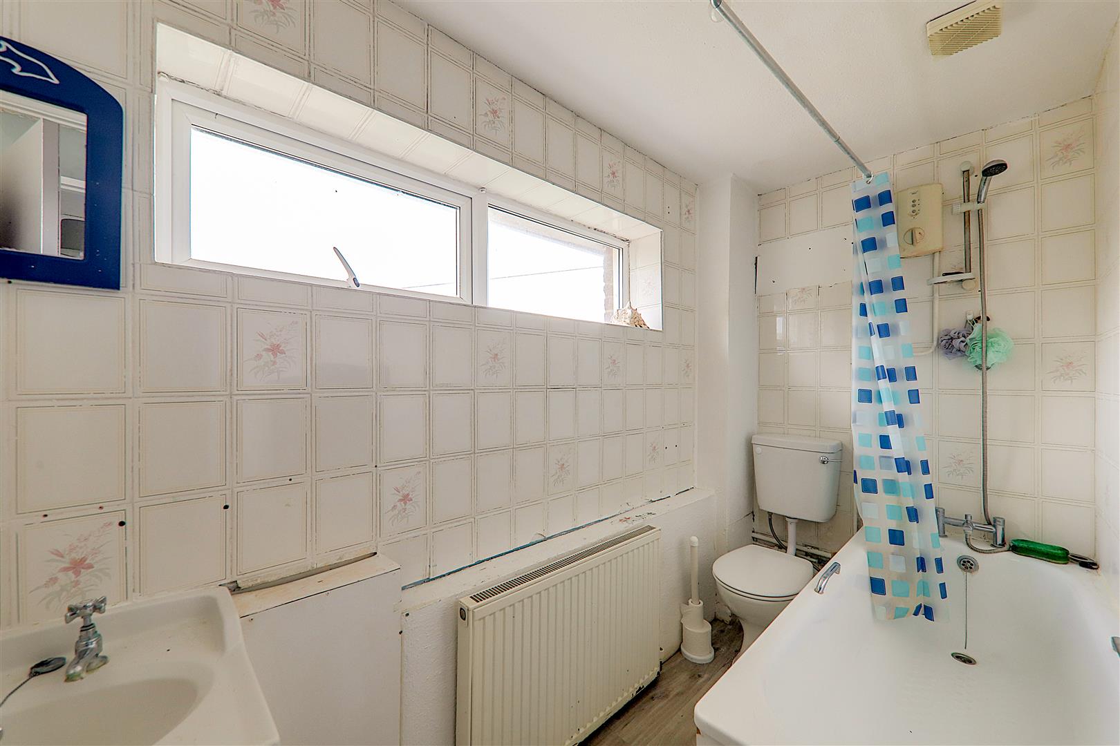 Low level walled surround. Double glazing. Space and plumbing for washing machine. Levelled ceiling. Double glazed French doors to Garden.
