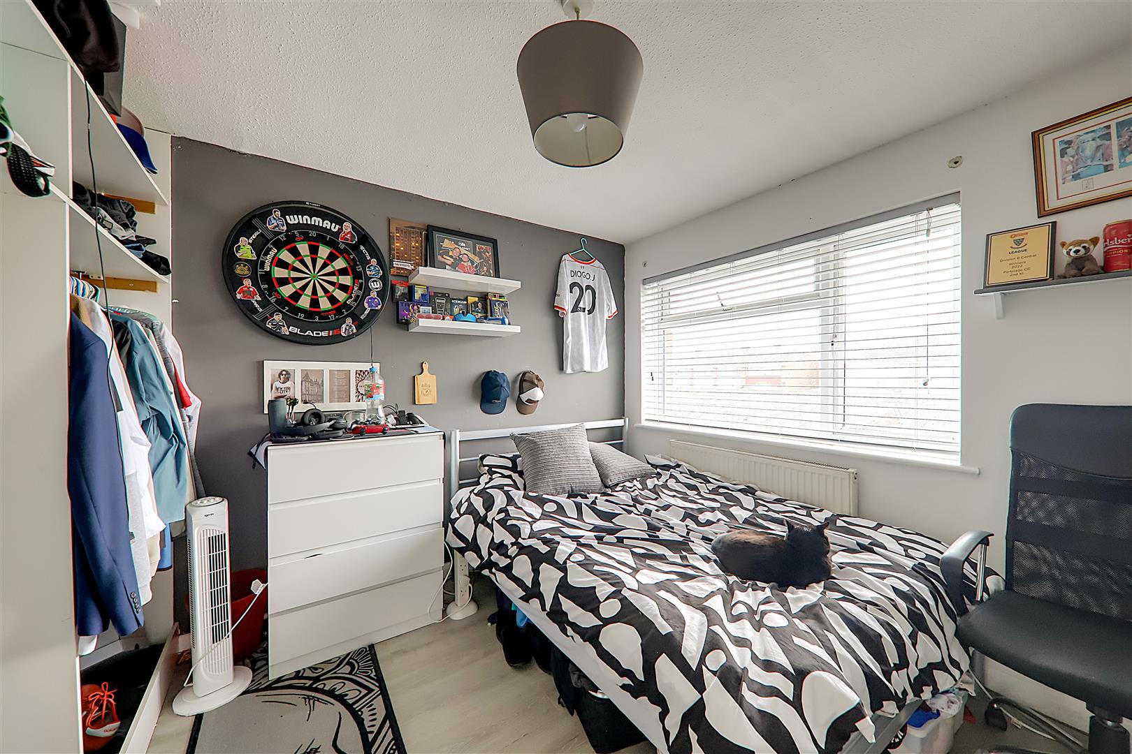 Double glazed window overlooking rear garden. Radiator. Recessed double door wardrobe with shelving and hanging rail.