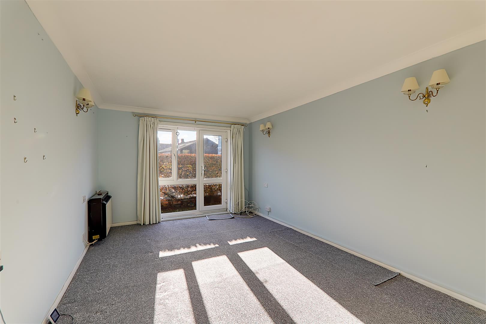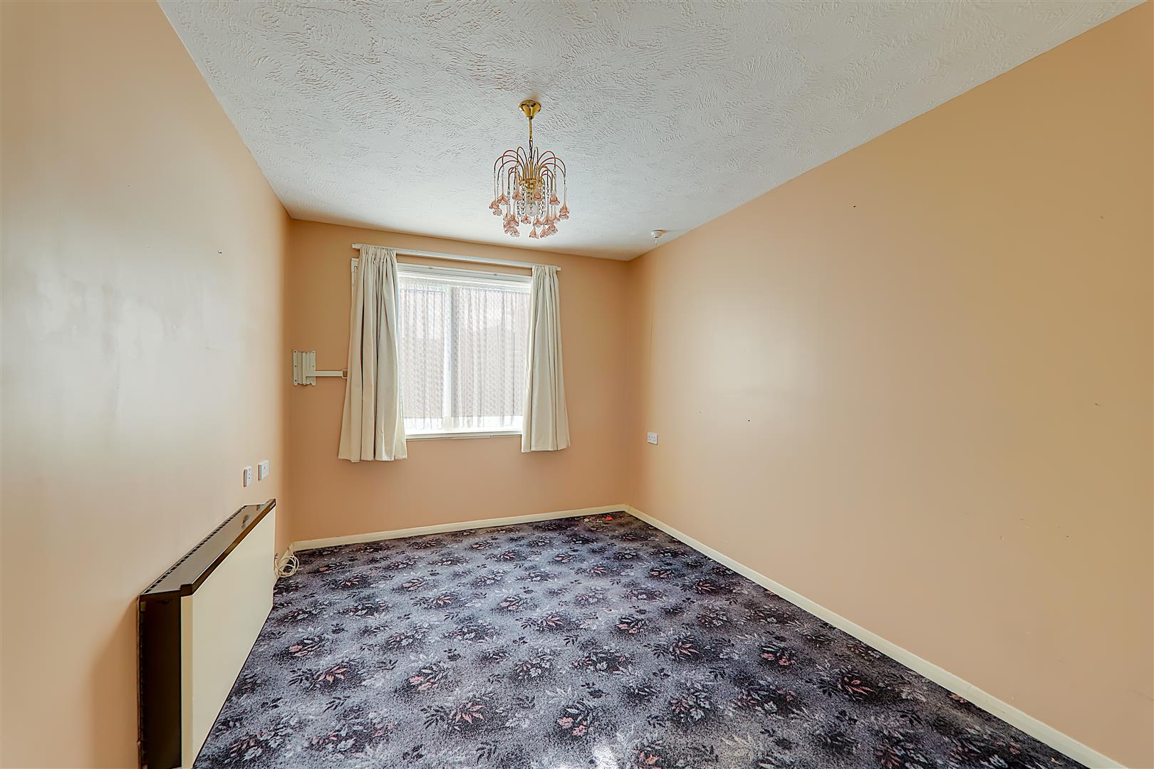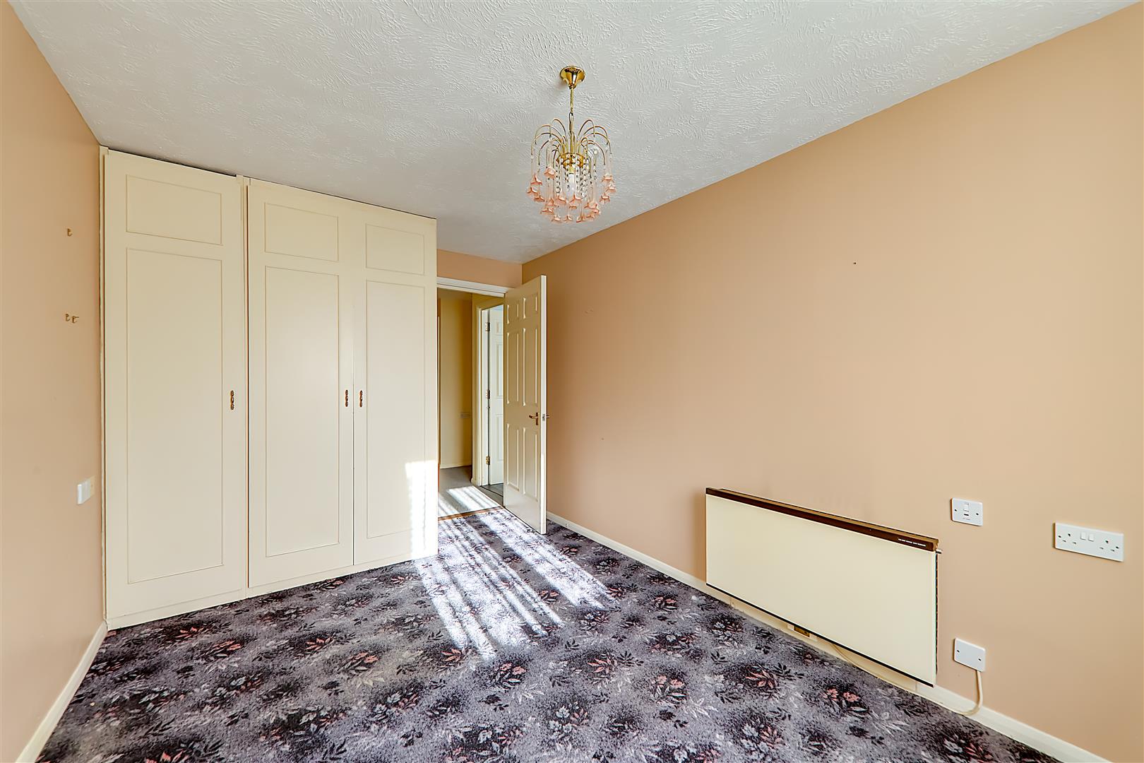 South aspect via double glazed windows with security shutter. Electric heater. Fitted double and space for single wardrobe. Textured ceiling. Warden pull cord.