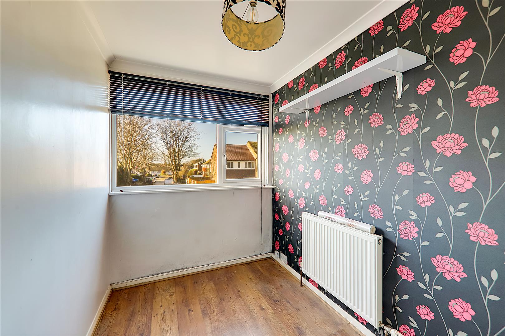 West aspect double glazed windows. Radiator. Feature wall. Overstairs storage cupboard. Levelled and the coved ceiling.