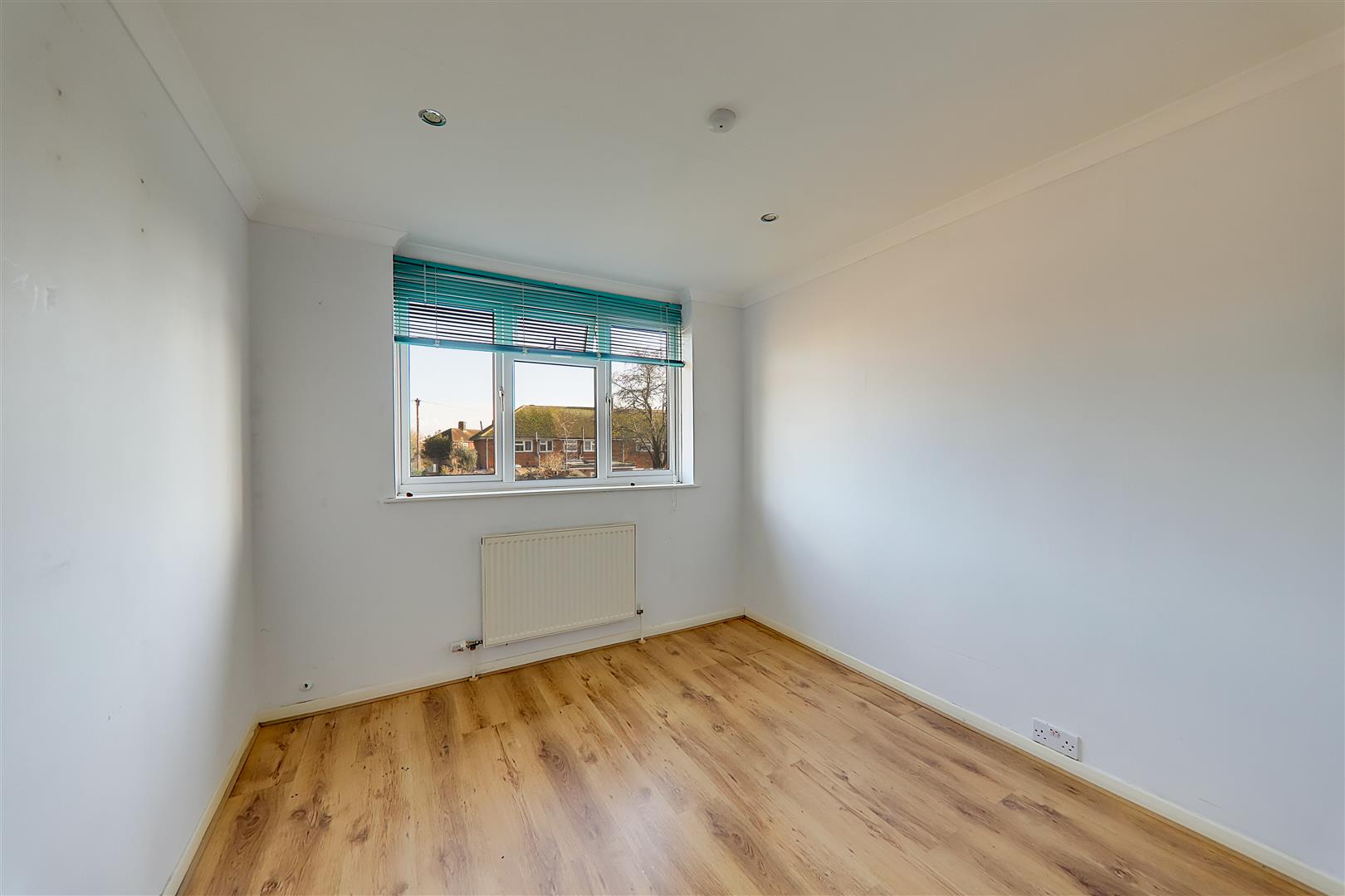 East aspect via double glazed windows. Radiator. Wood laminate flooring. Dimmer switch. Levelled and coved ceiling with spotlights.