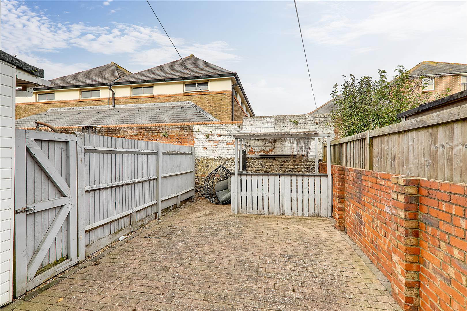 Enclosed by low wall with path leading to front door. Block paved for ease of maintenance.