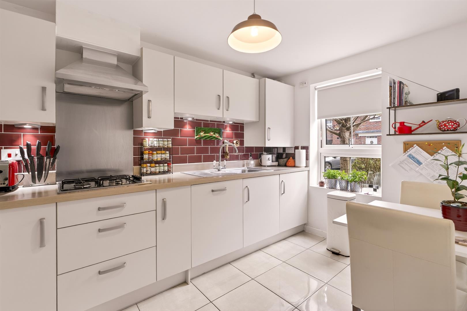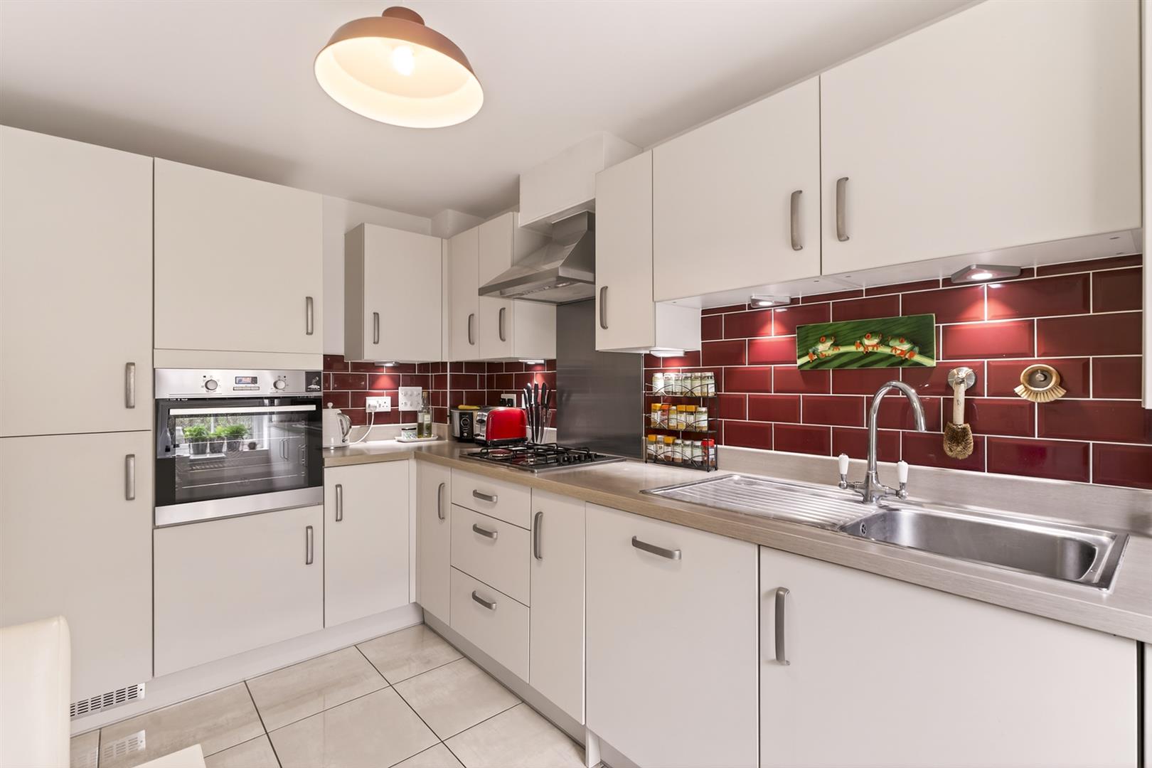Comprising of a range of base and eye level cabinets. Feature part tiled walls. Worktop with inset sink and drainer with mixer tap over. Integrated fridge. Integrated washing machine. Integrated dishwasher. Eyelevel oven/grill. Four ring gas hob with stainless steel splashback and extractor fan above. Levelled ceiling with pendant light. Double glazed window. Space to accommodate a breakfast table and chairs.