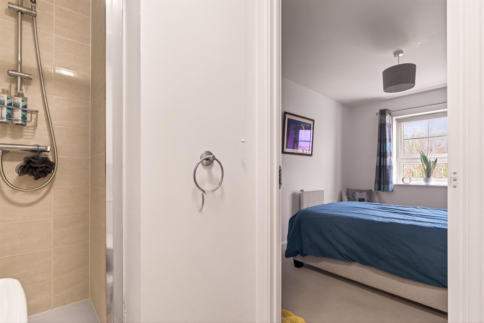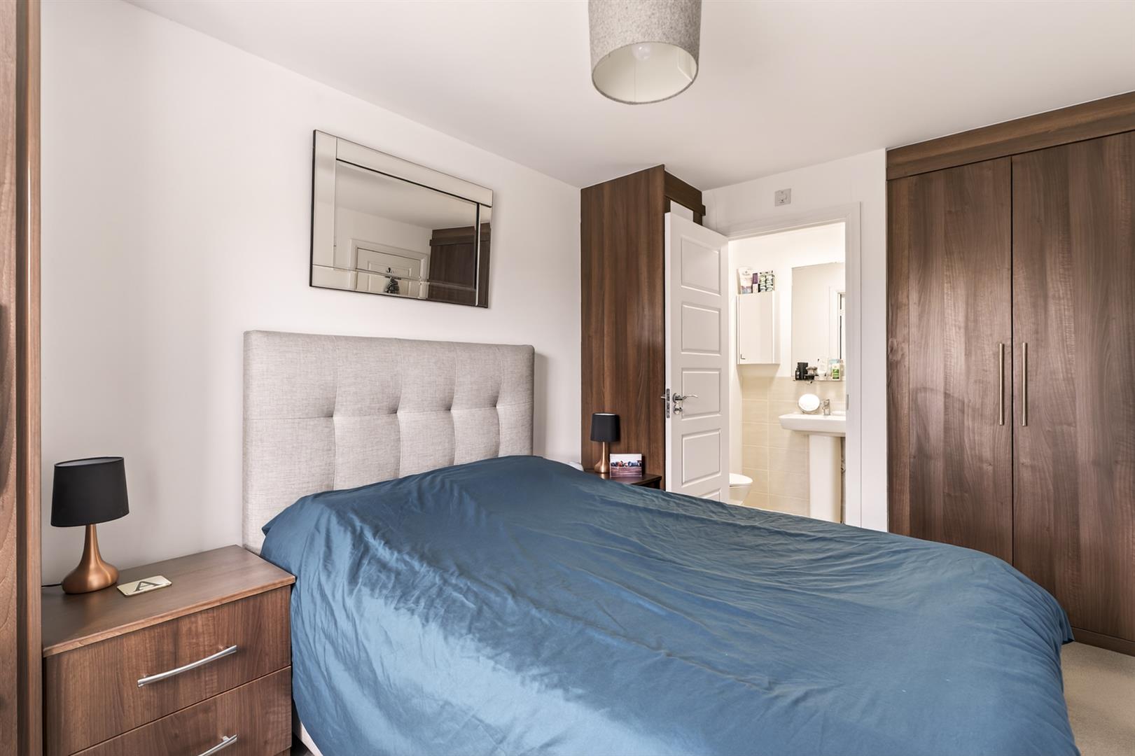 Double bedroom. Carpet. Levelled ceiling with pendant light. Double glazed window overlooking the read garden. Radiator. Built in wardrobes. Wall mounted thermostat. Door to;