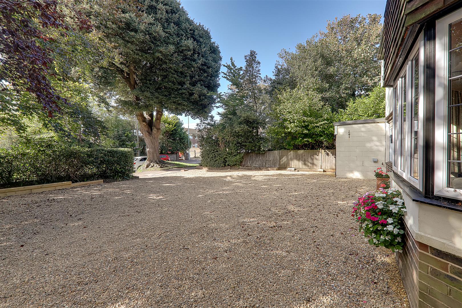 Providing off road parking for numerous vehicles, including motorhome. Flower and shrub borders to two sides.