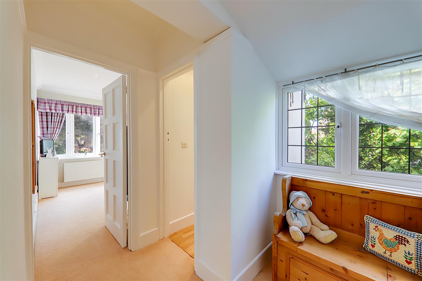 North aspect leaded light double glazed window. Radiator. Picture. Levelled and cornice ceiling with spotlights. Access to loft space. Doors to all first floor rooms.