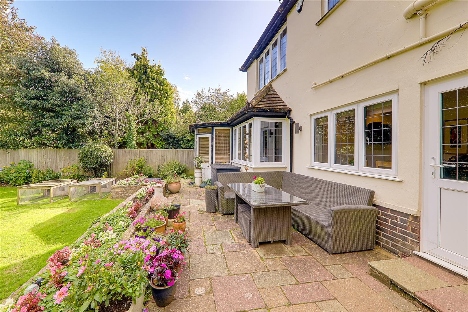 Secluded rear garden whish is predominantly East facing, but due to its size benefiting from sunlight throughout the day. The first area of garden is paved to the full width of the property with brick edged flower and shrub beds and offering ample space for garden table and chairs. Outside water tap. Outside wall lighting. The majority and remainder of garden with flower and shrub borders.