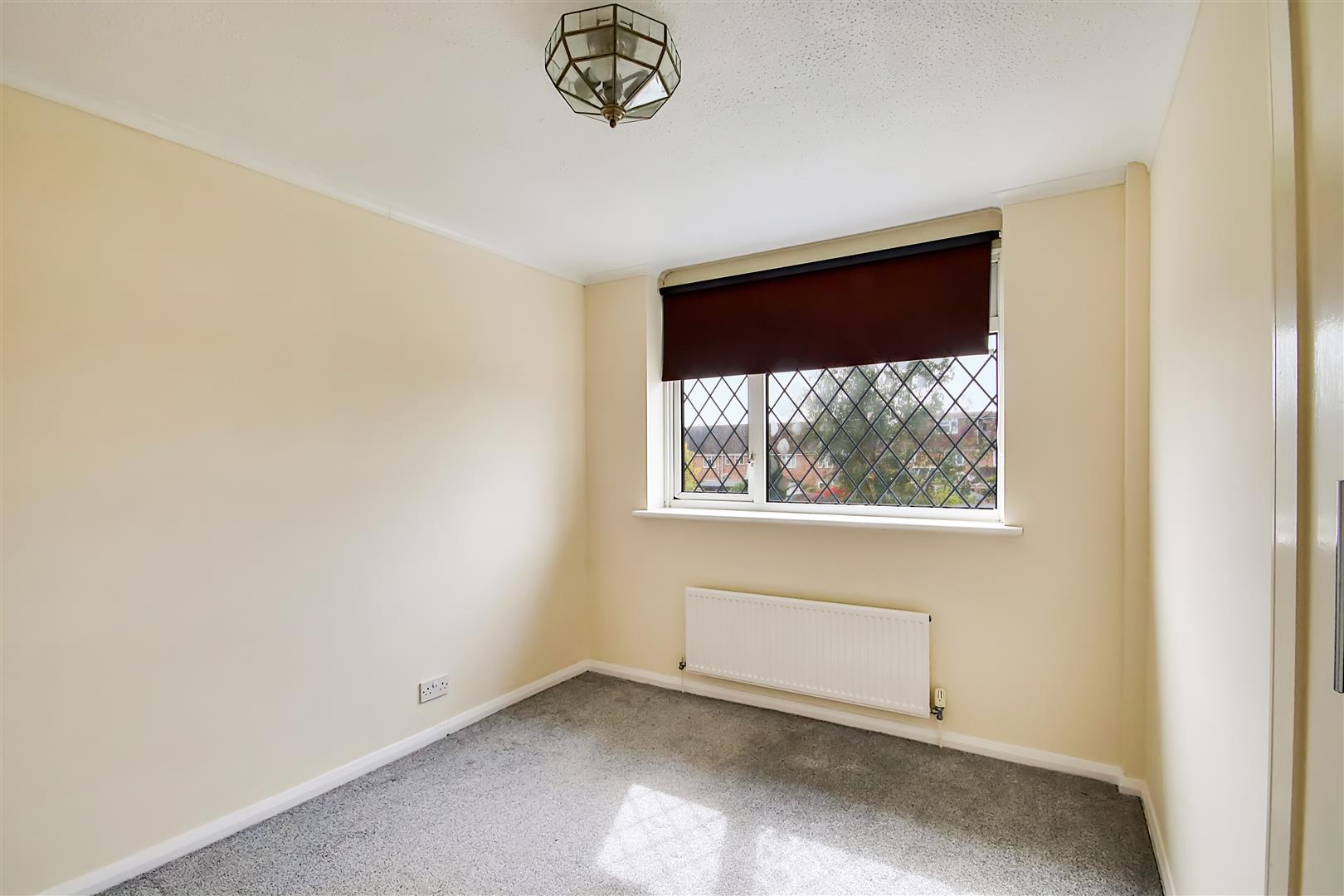 Radiator. Access to shelved cupboard above stairs. Leaded light double glazed window. Pendant light. Carpet.