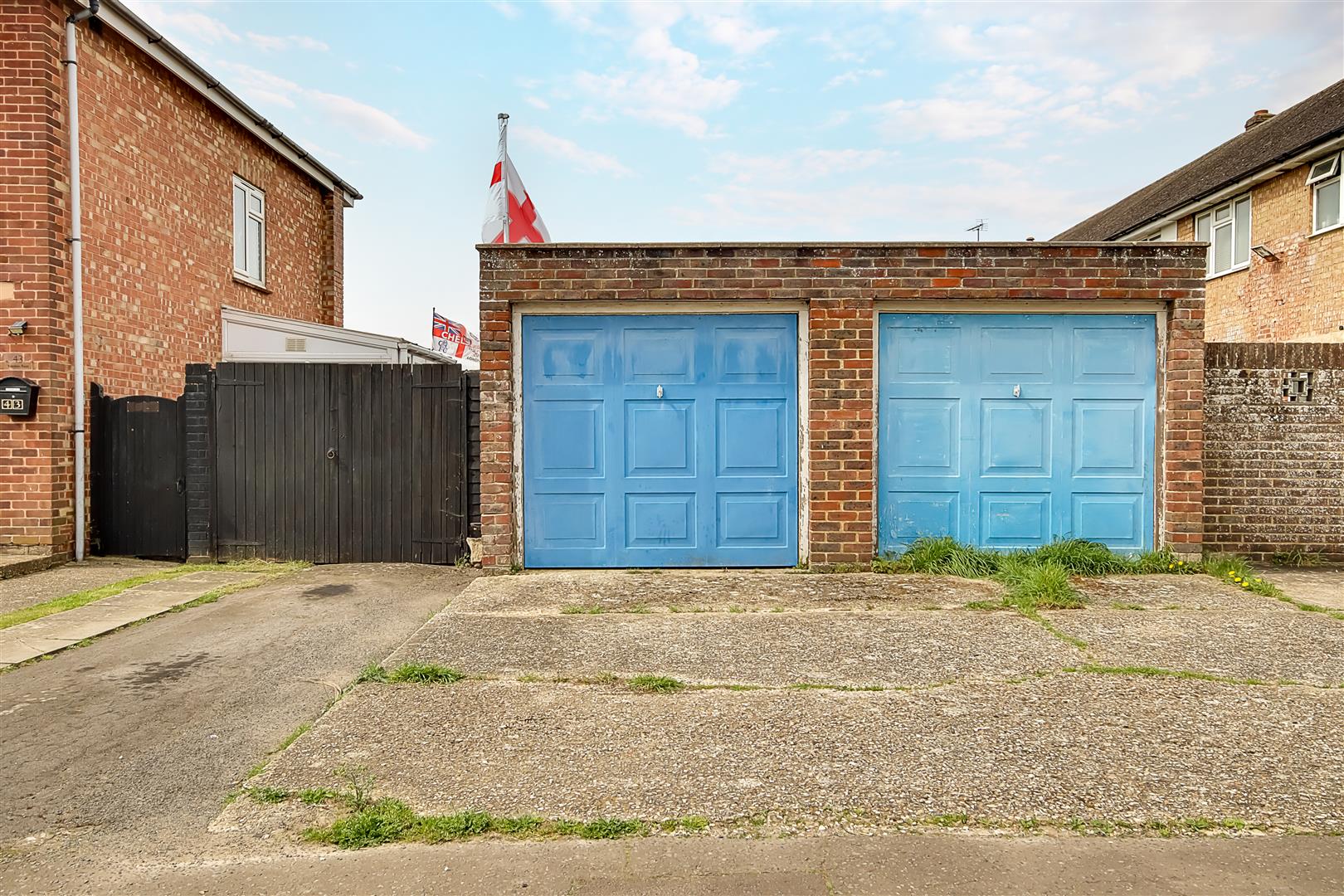 Brick built garage with up and over door located in compound. Space to park a car in front of the garage.