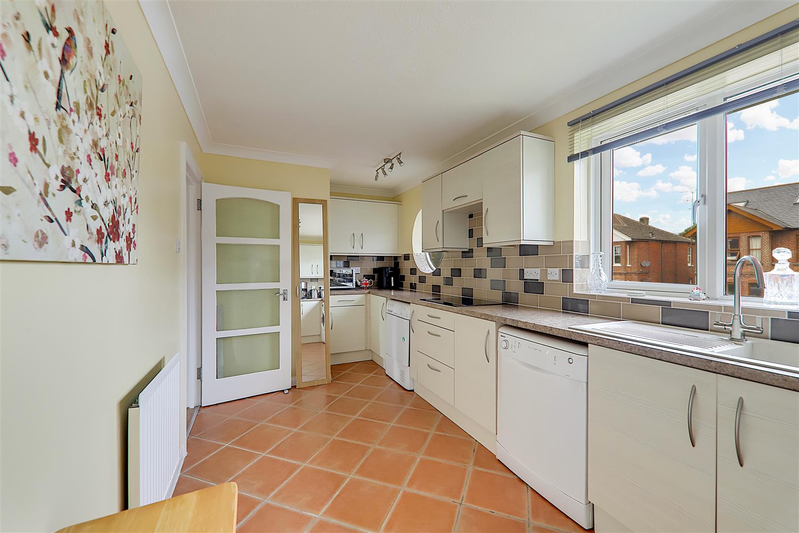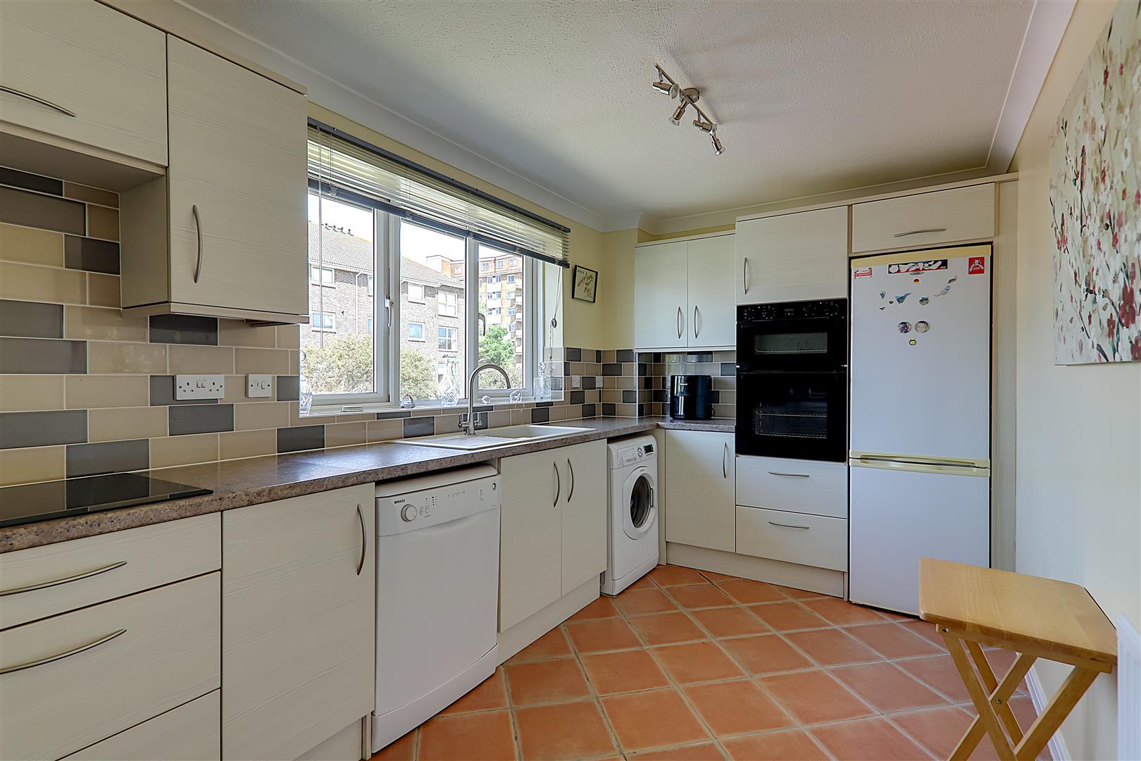 Excellent range of work surfaces with cupboards and drawers fitted under. Inset sink unit. Four ring electric hob. Built in oven with cupboard above and below. Space for appliances. Range of matching wall cupboards. Part tiled walls. Fully tiled flooring throughout. Feature single glazed circular window. Double glazed window. Radiator. Space for table and chairs.
