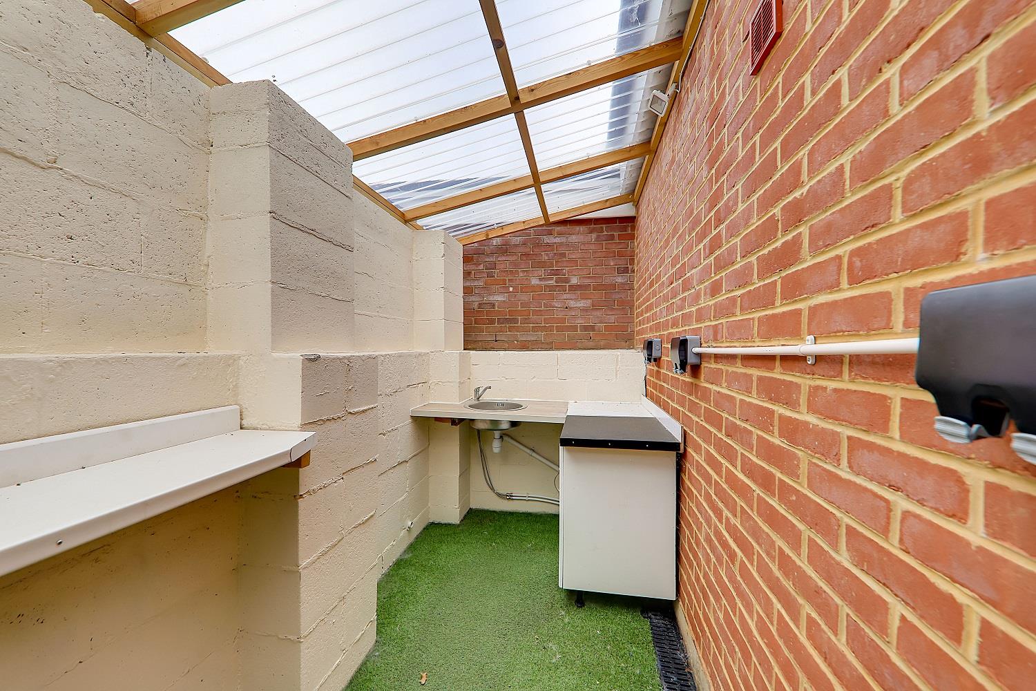 Good sized back room with WC and store cupboard. Outside modern kitchen area, recently fitted. Parking for 1 vehicle to the rear of the