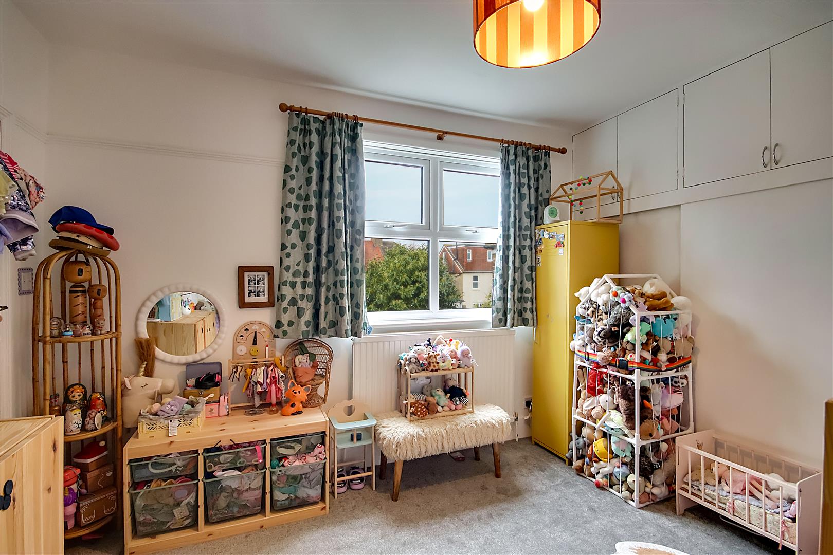 Carpeted floor, radiator, various power points, double glazed window, picture rail, textured ceiling, fitted storage cupboard.