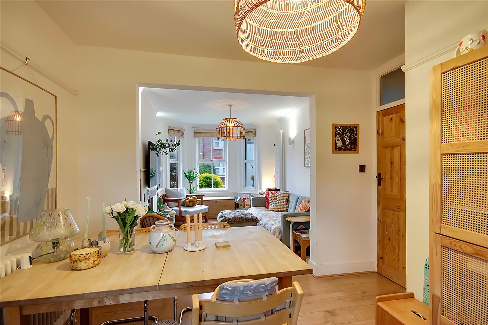 Laminate flooring, school radiator, picture rail, double glazed door to rear garden, textured ceiling.