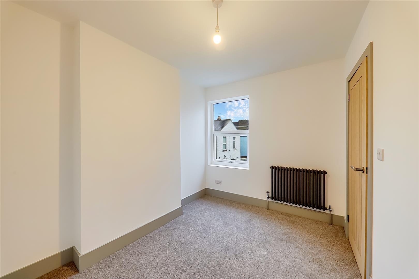 Double glazed windows with fitted slatted blinds. Radiator.