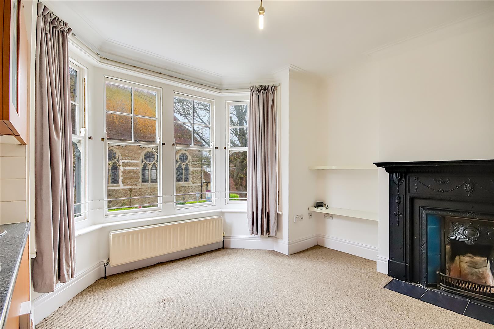 Sash bay window to front. Two radiators. Feature fireplace with wrought iron surround and mantel.