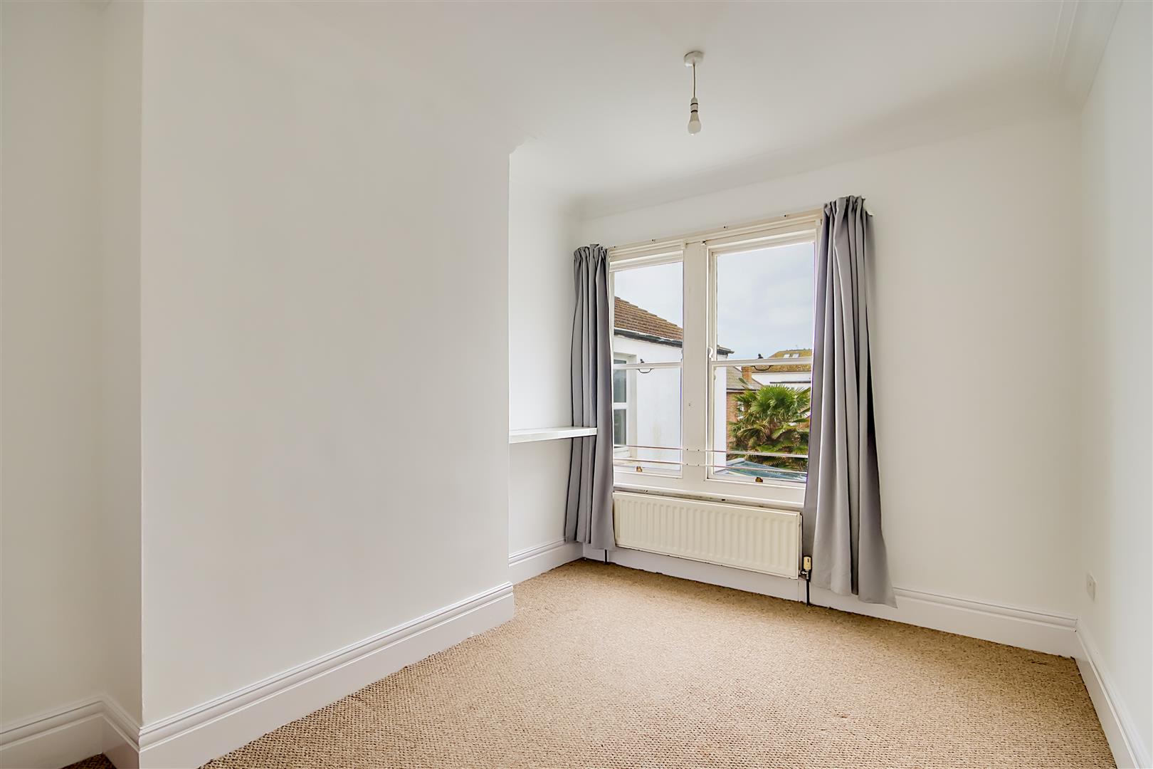 Two sash windows to rear. Radiator. Levelled and coved ceiling.