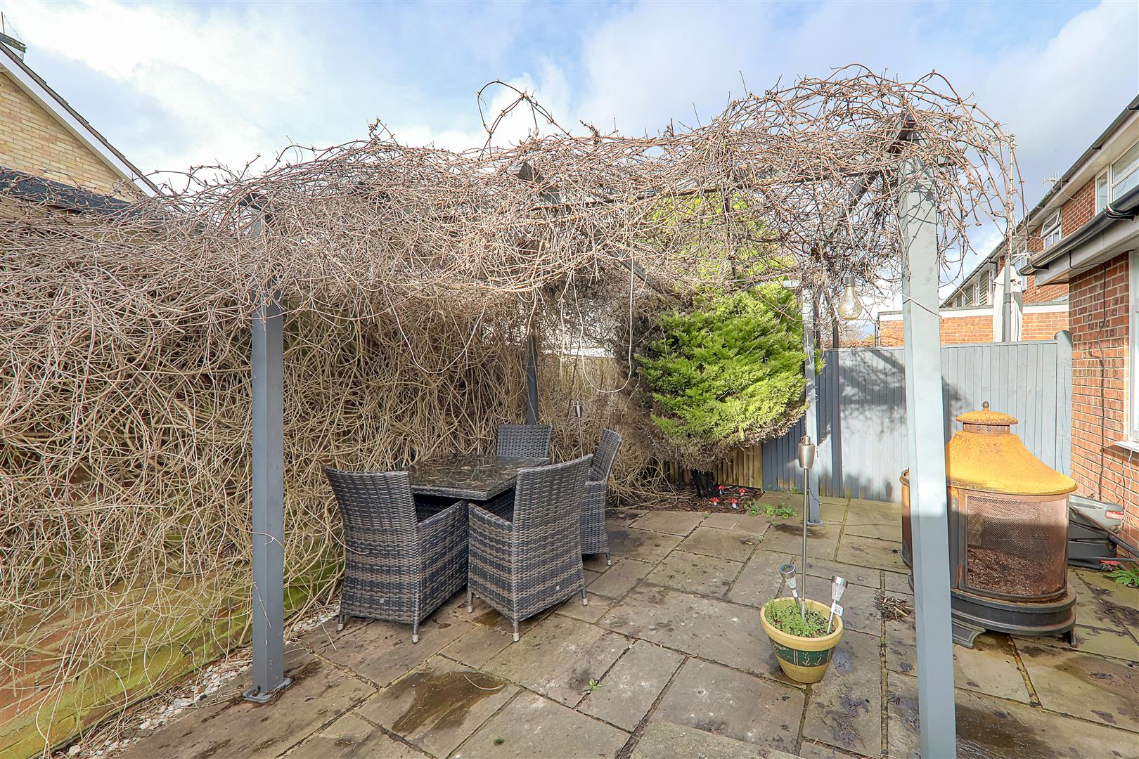 Paved and courtyard style rear garden with space for garden table and chairs. Outside wall light. Side gate to private driveway.