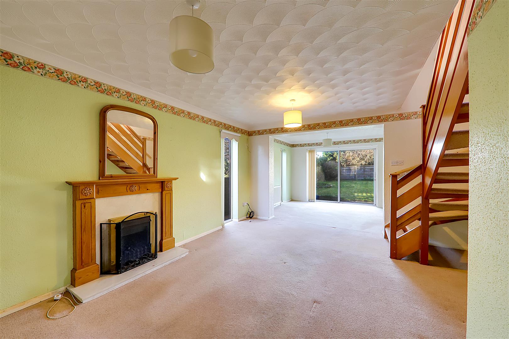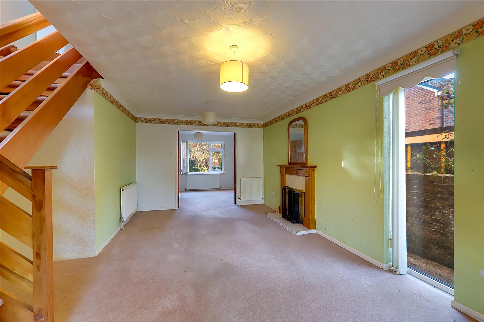 Two feature double glazed windows to side. Four radiators. Double doors to dining room. Fireplace with wooden surround. Open staircase rising to first floor. Sliding doors to the rear garden.