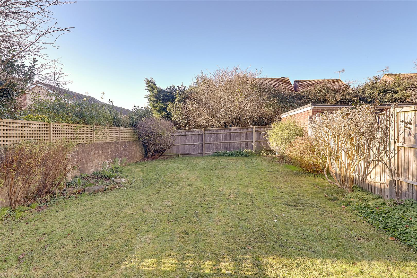 Of popular westerly aspect and mainly laid to lawn with a variety or shrub borders. Gate giving access to to side driveway.